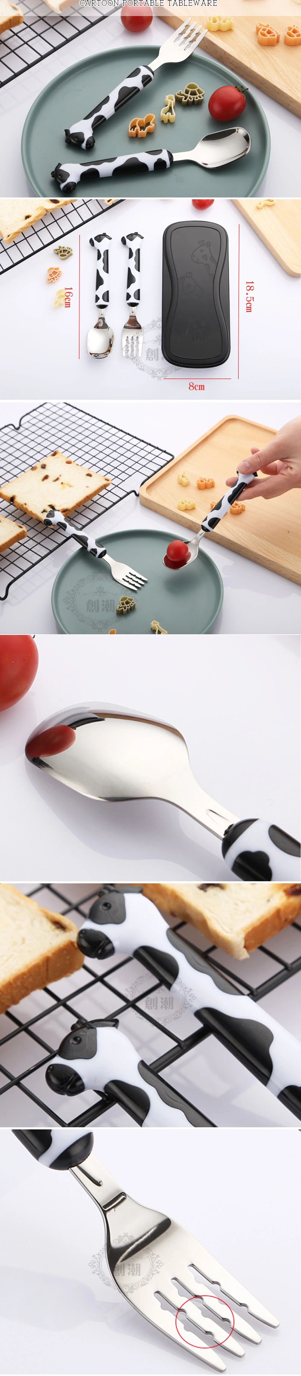 CHANOVEL Baby S poon Fork Safety 304 Stainless Steel Feeding Cartoon Tableware