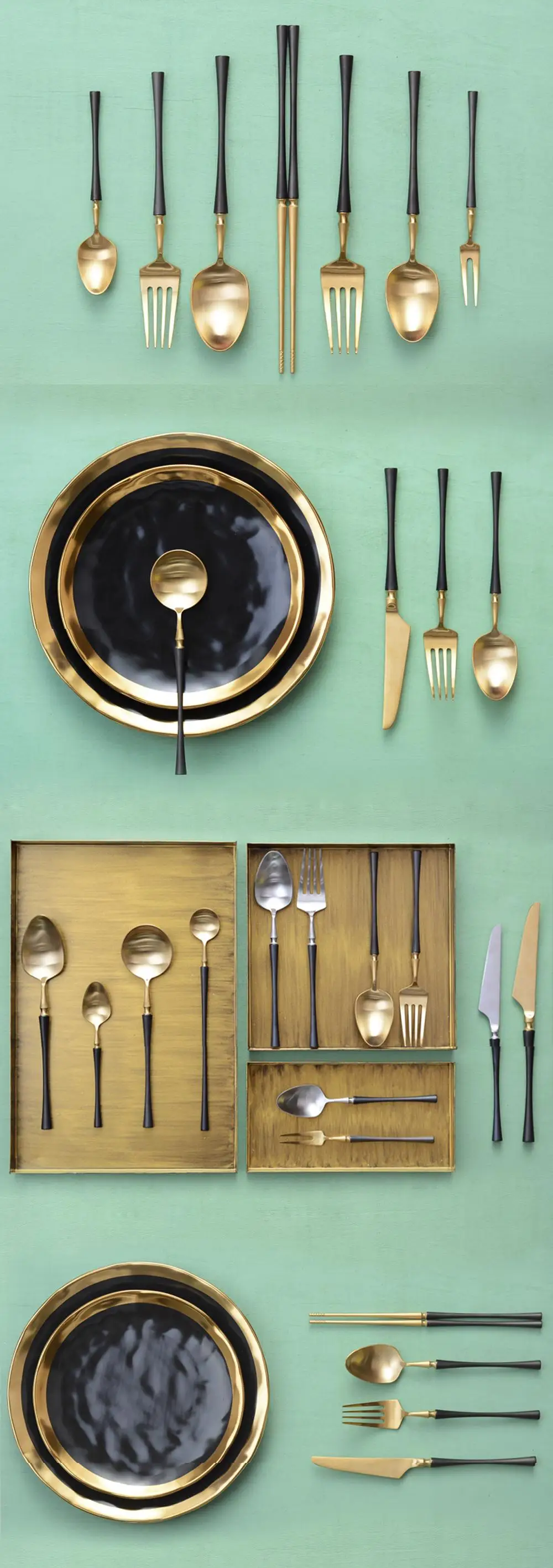 CHANOVEL New Black-Gold 304 Stainless Steel S poon Knife Dessert Fork Cutlery Dinnerware Tableware Set Kitchen Accessories