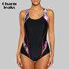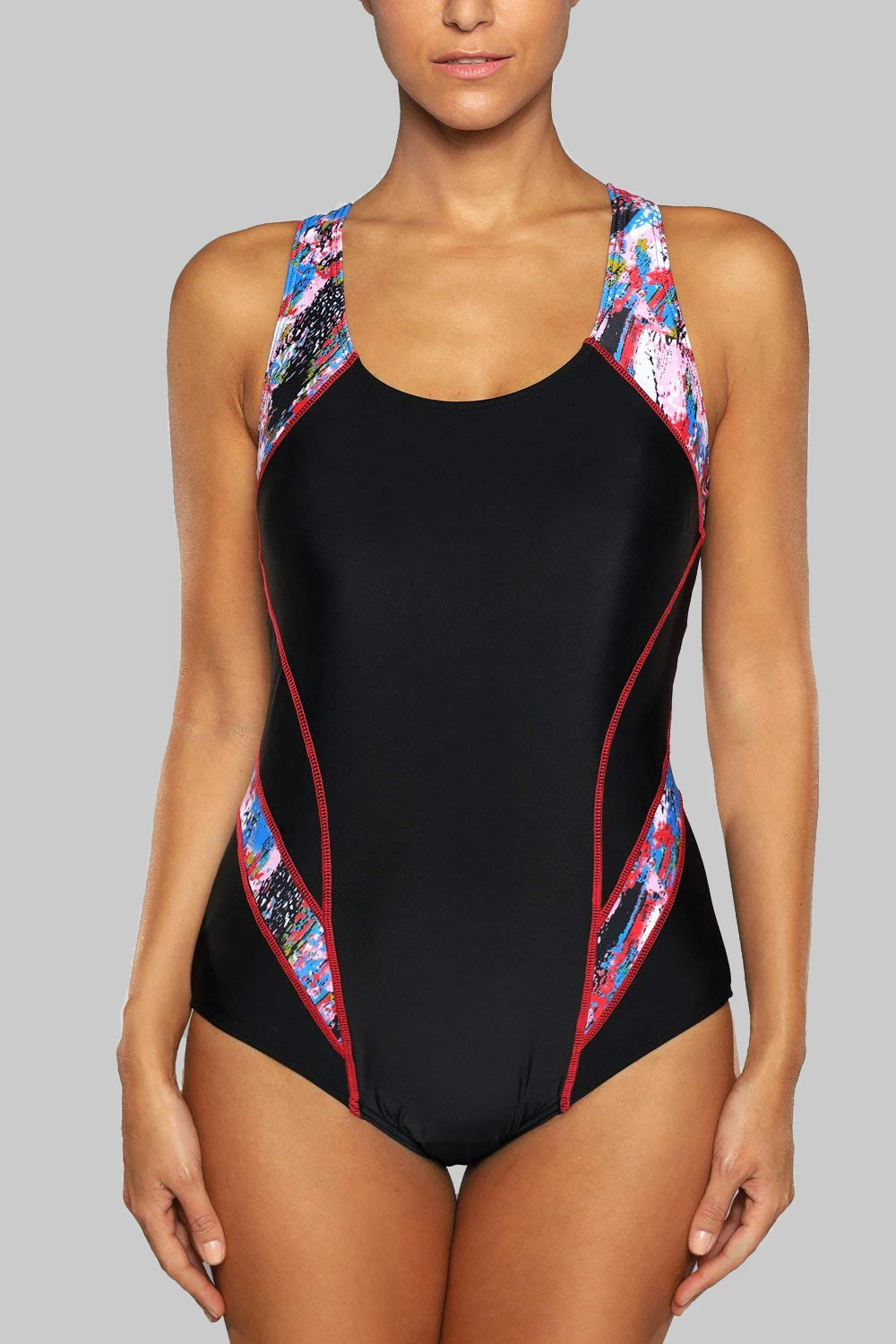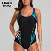 Charmleaks One Piece Women Sports Swimwear Sports Swimsuit Colorblock Monokini Beach Bathing Suit