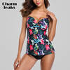 Charmleaks Tankini Set Women Swimsuits Retro Floral Print Swimwear Padded Push Up Bikini Bathing Suit Beach Wear