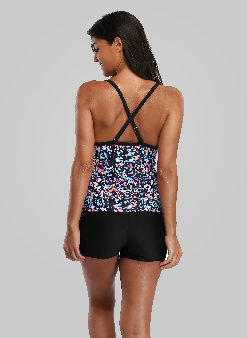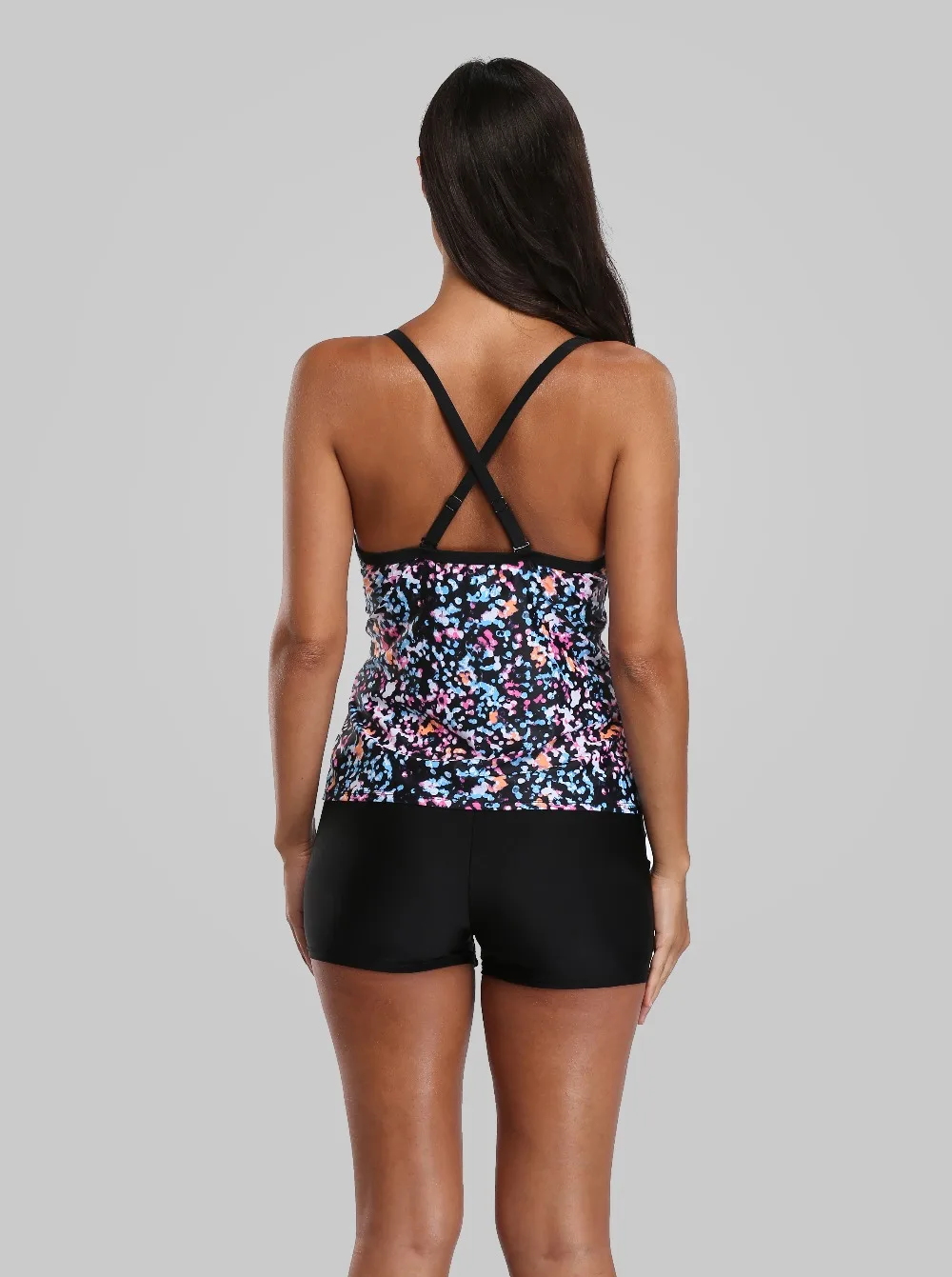 Charmleaks Tankini Set Women Swimwear Vintage Floral Print Swimsuit Back Cross Swimwear Bikini Bathing Suit Beach Wear