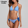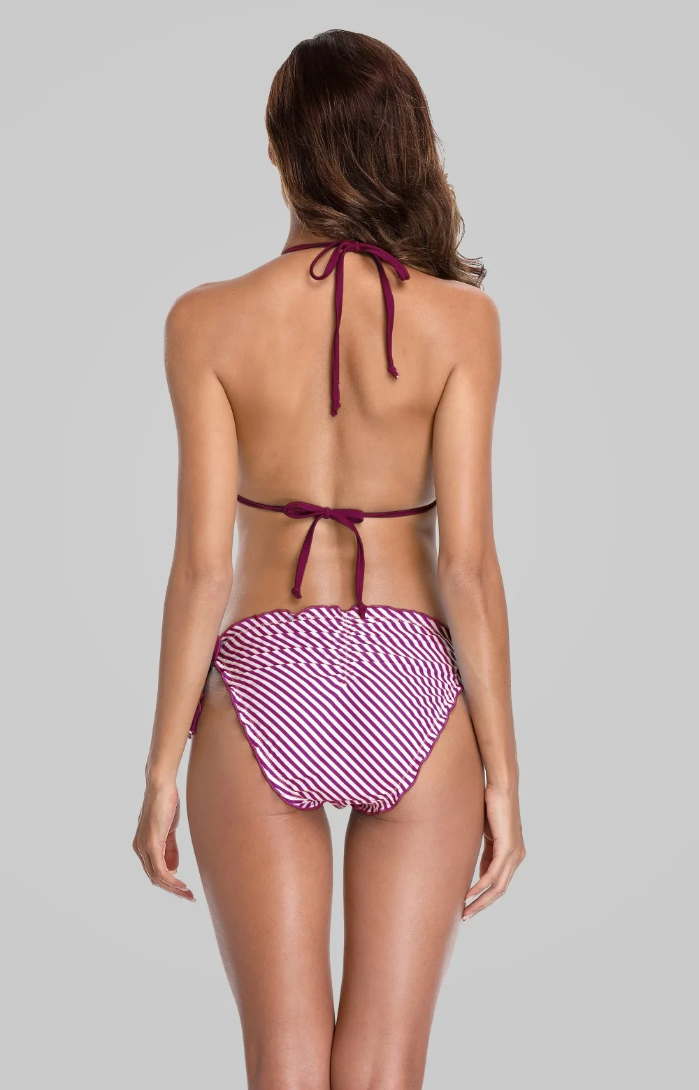 Charmleaks Women Bikini Set Halter Swimwear Stripe Swimsuit Side Bandage Bathing Suit Beachwear Push Up Bikini