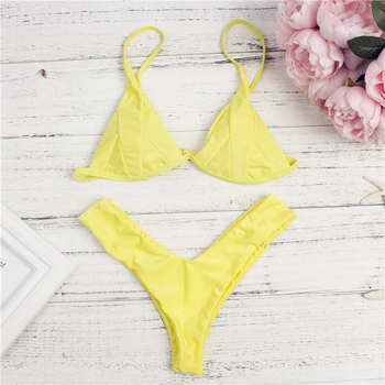 Charmleaks Women Bikini Set Halter Swimwear Stripe Swimsuit Side Bandage Bathing Suit Beachwear Push Up Sexy Bikini