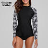 Charmleaks Women Long Sleeve Rashguard Swimsuit Floral Print Swimwear Surfing Top Running Shirts Rash Guard UPF50+ Beachwear