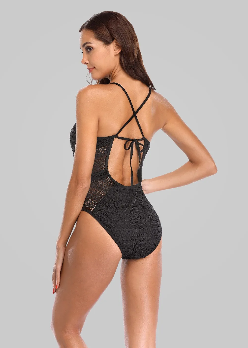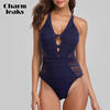 Charmleaks Women One Piece Swimsuit Mesh Swimwear Deep V Swimwear Back Cross Bikini Bandage Sexy Monokini Bathing Suit