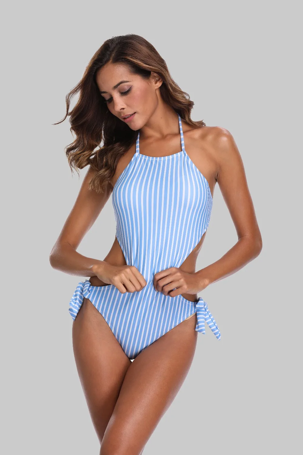 Charmleaks Women One Piece Swimsuit Strappy Stripe Swimwear Bandage Cutout Bikini Sexy Monokini