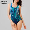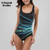 Charmleaks Women One Piece Swimwear Geometry Print Swimwear Women Colorblock Swimsuit Bathing Suit Monokini Bikini