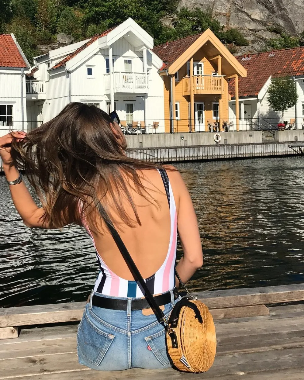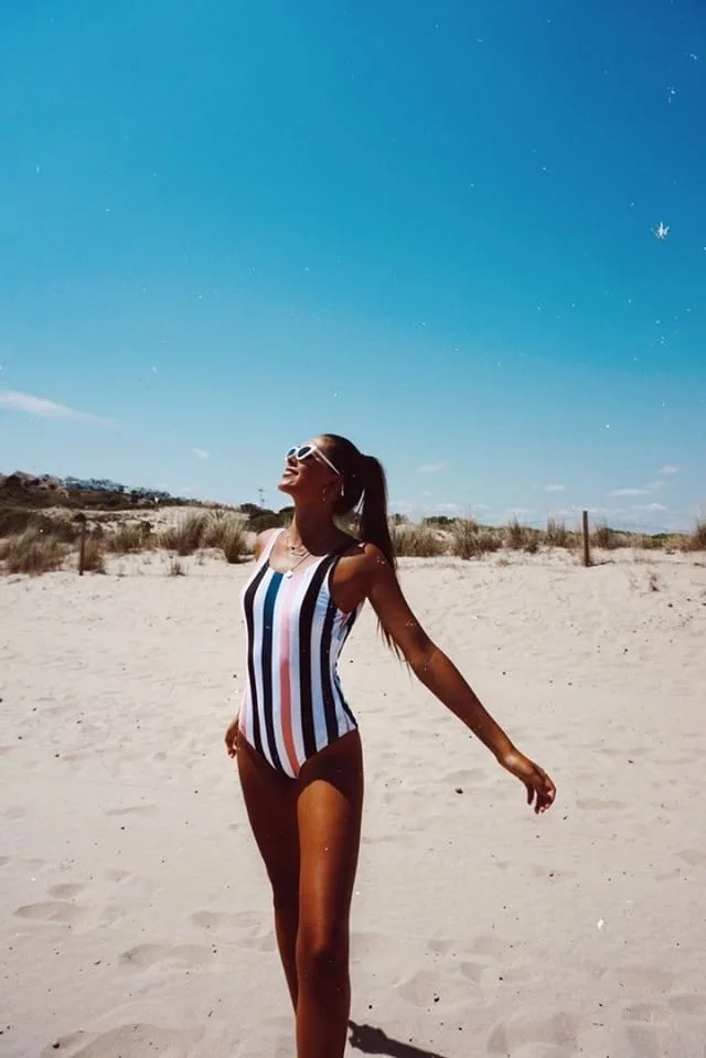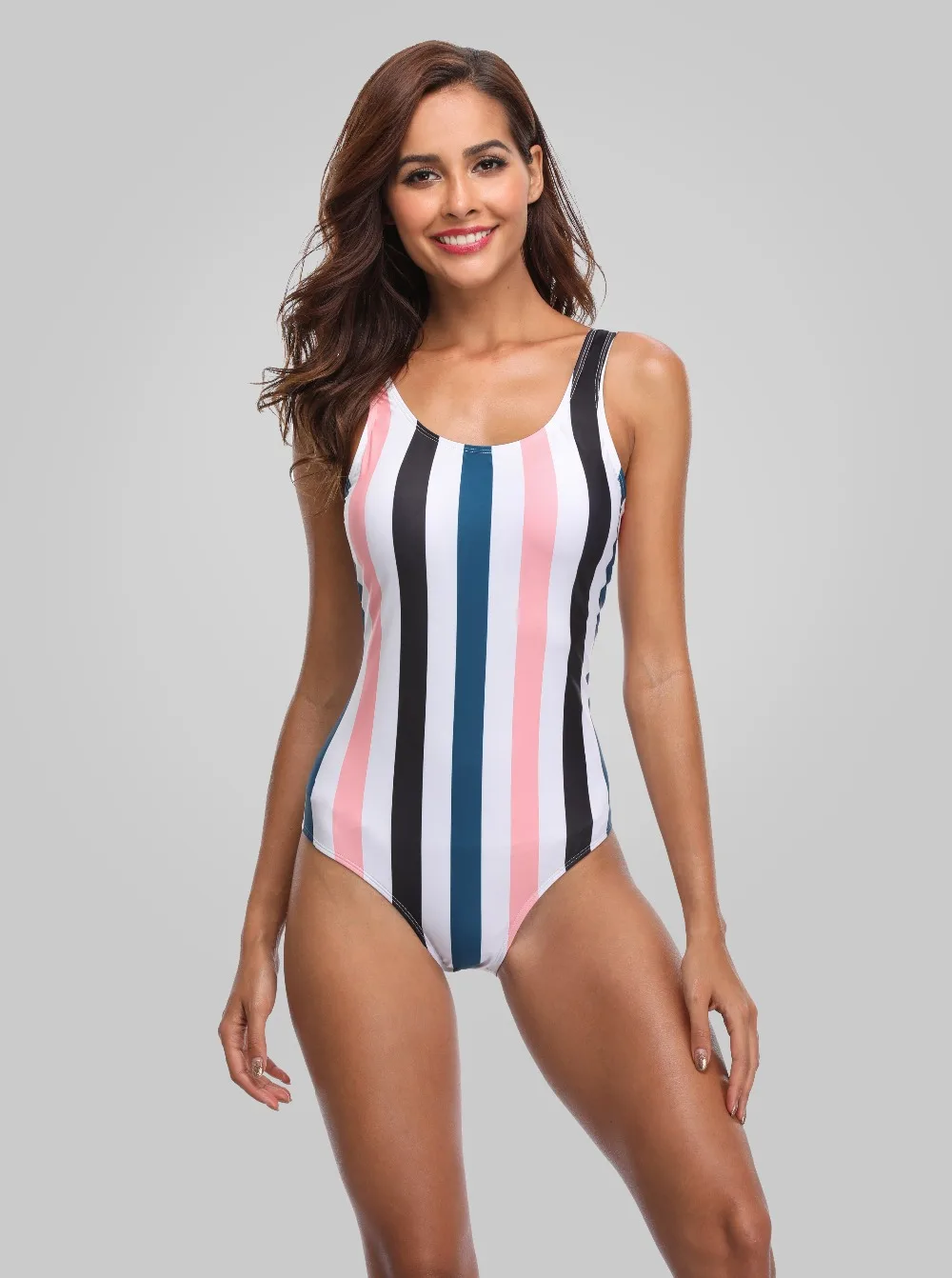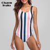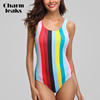 Charmleaks Women One Piece Swimwear Striped Swimwear Women Colorblock Swimsuit Monokini Backless Bathing Suit Bikini