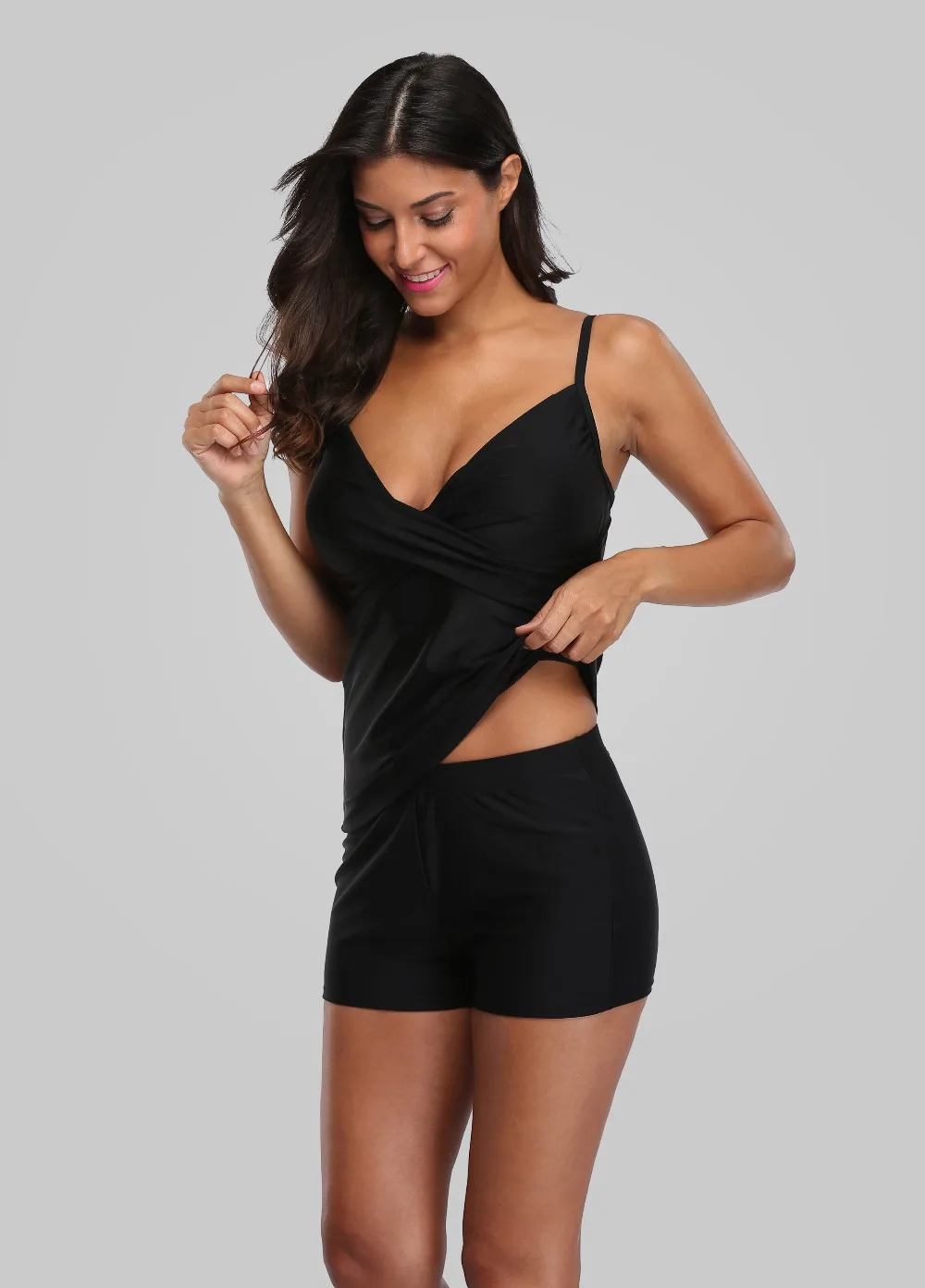 Charmleaks Women Tankini Set Women Swimsuit Solid Color Retro Bikini Set Vintage Cross Swimwear Bathing Suit