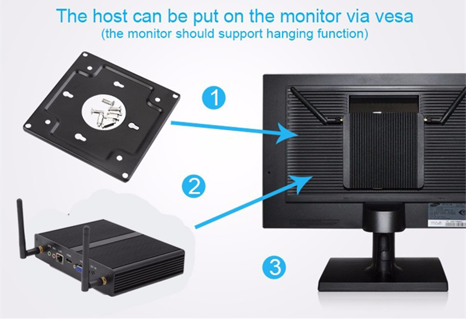 1x Mini PC 1x SATA cables 1xHDMI cable(as gift) 1x Vesa bracket(optional to buy) |