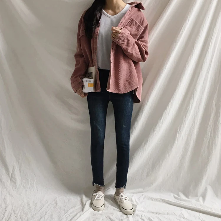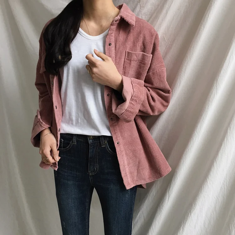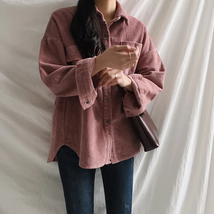 Cheerart Corduroy Jacket Autumn 2018 Loose Coats And Jackets Women Fall Shirt Jacket Casual Outwear Femme Clothing