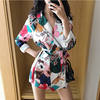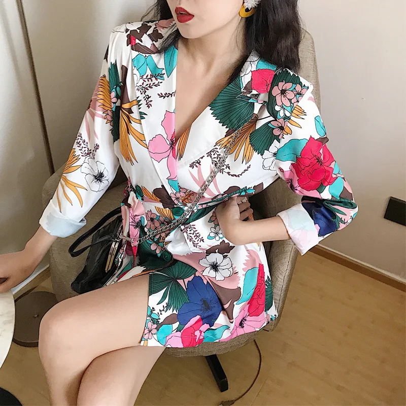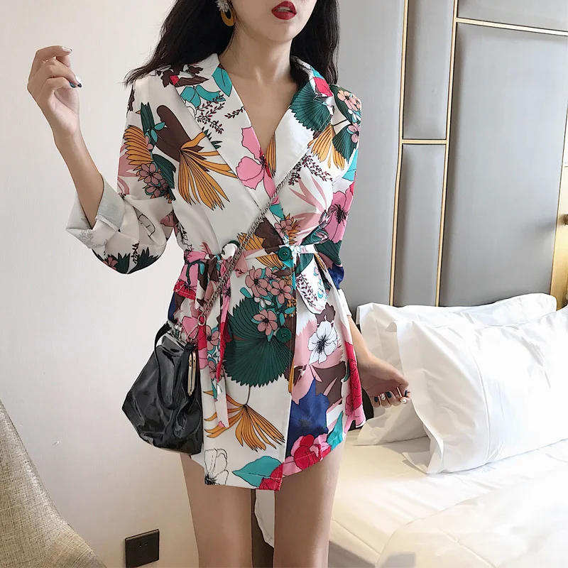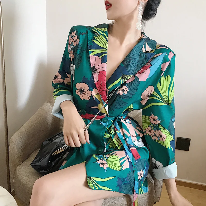 Cheerart Floral Blazer Women 2018 Autumn Women Fashion Print Blazer Casual Lace Up Long Ladies Blazer High Street