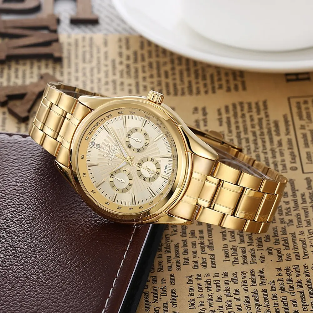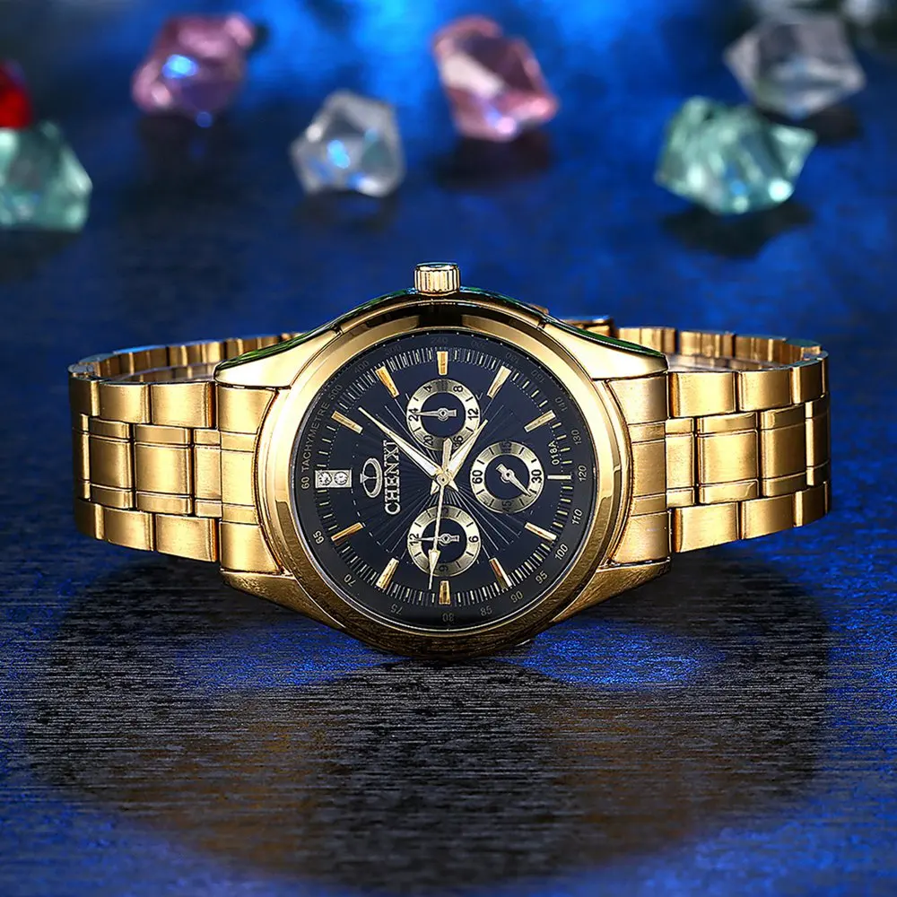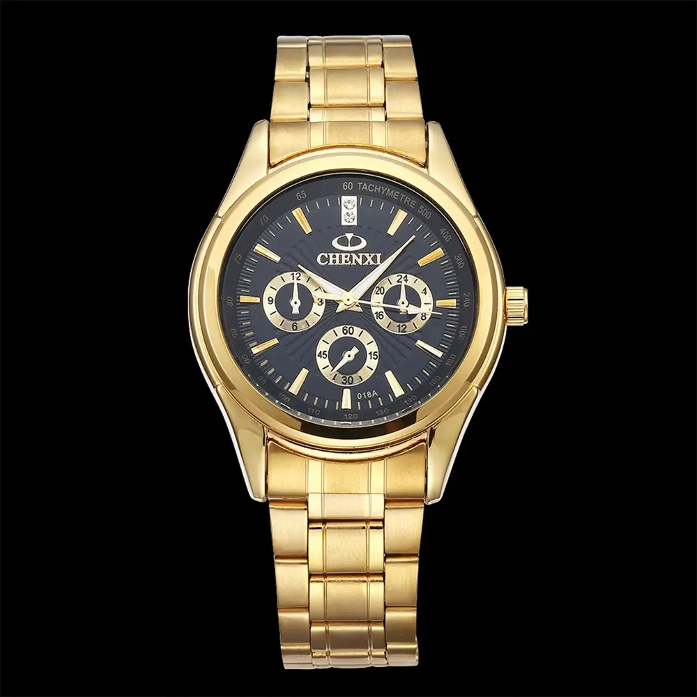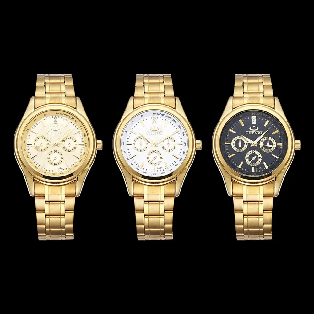 CHENXI Luxury Gold Men Watch Unique Business Series Waterproof Quartz Male Clock 2017 Antique Classic Black Wristwatch for Man