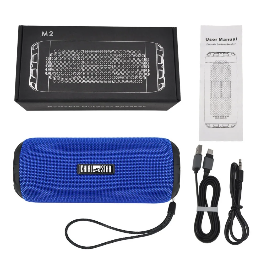 Chialstar Outdoor Speaker M2 Blue Waterproof IPX6 12W Bluetooth Speakers Fabric Sports with Mic for Iphone iPad Mobile Phone