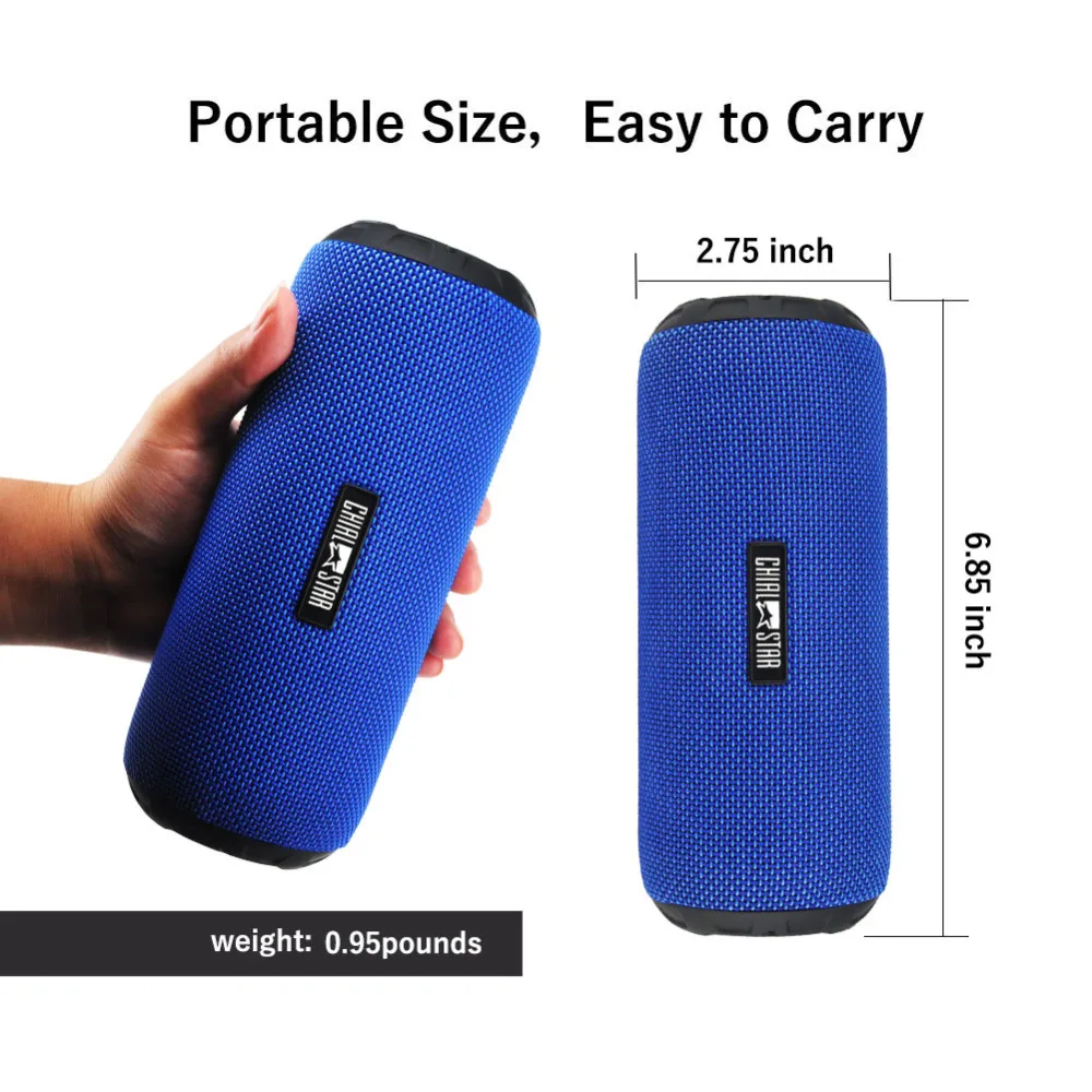 Waterproof Speaker: IPX6 No need worry about if it still works normal if Speaker was carelessfully splashed by water, our durable fabric covering can achieve resists gentle water spray & spashes for 6-8 Hours playing in outdoor.
