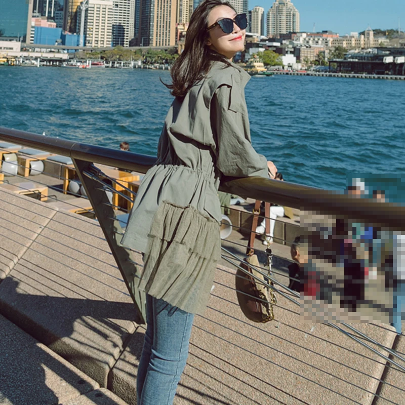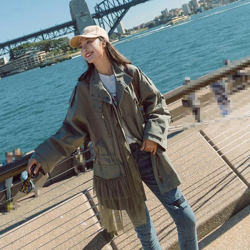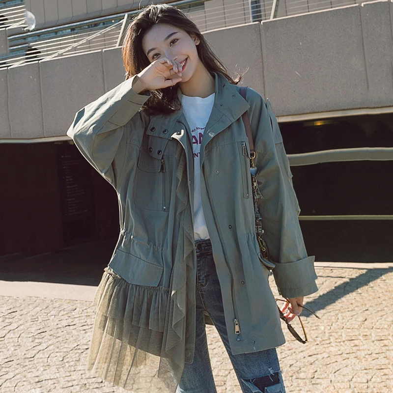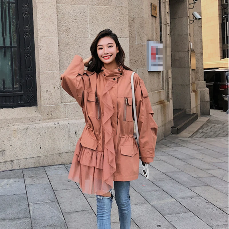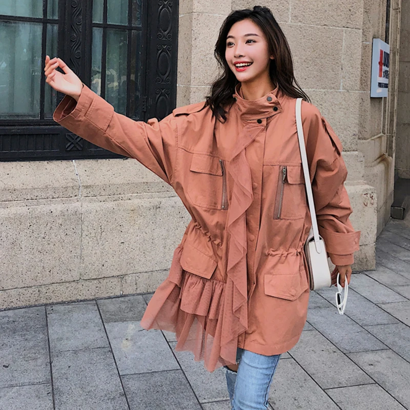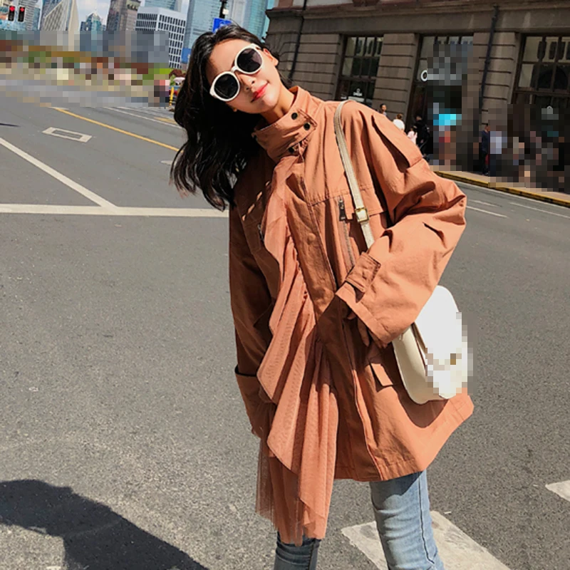 CHICEVER Patchwork Mesh Trench Coat For Women’s Windbreaker Stand Collar Long Sleeve Zipper Trench Female Autumn Fashion Tide