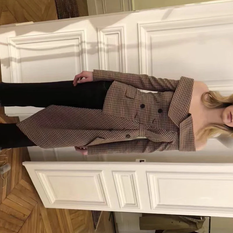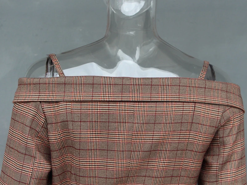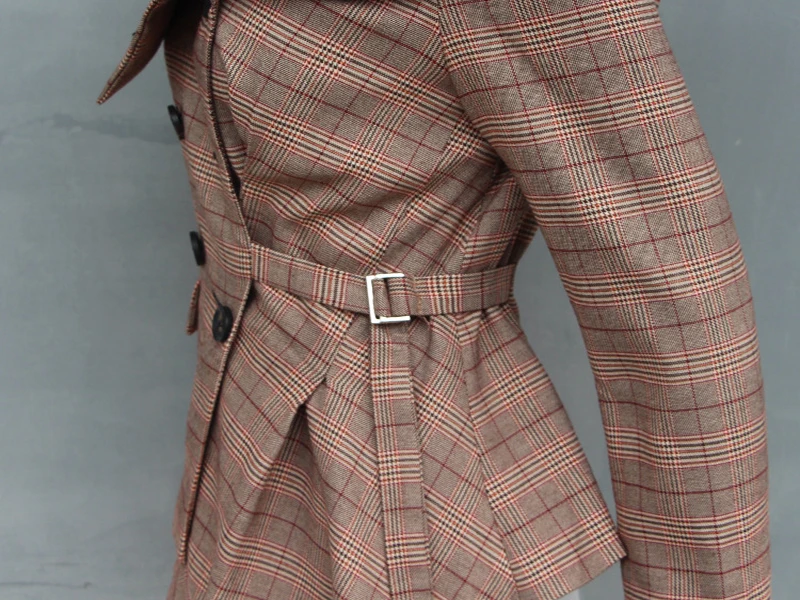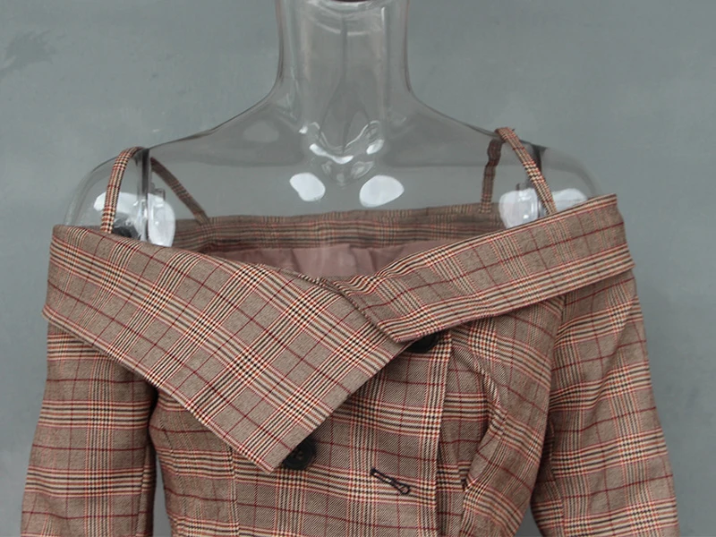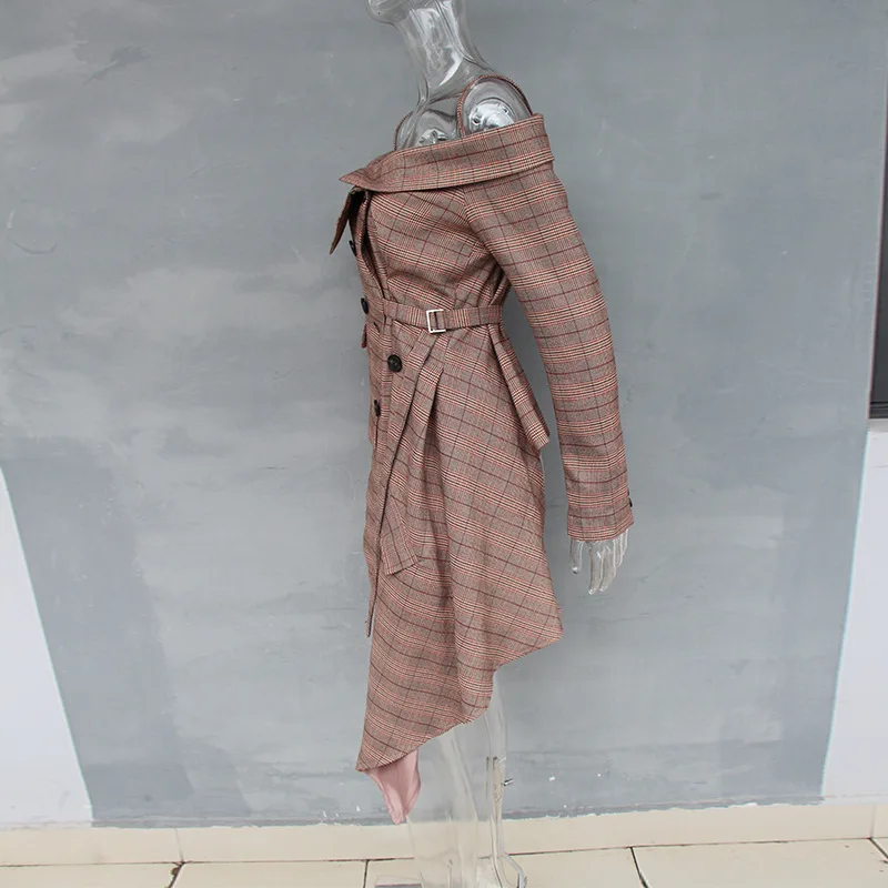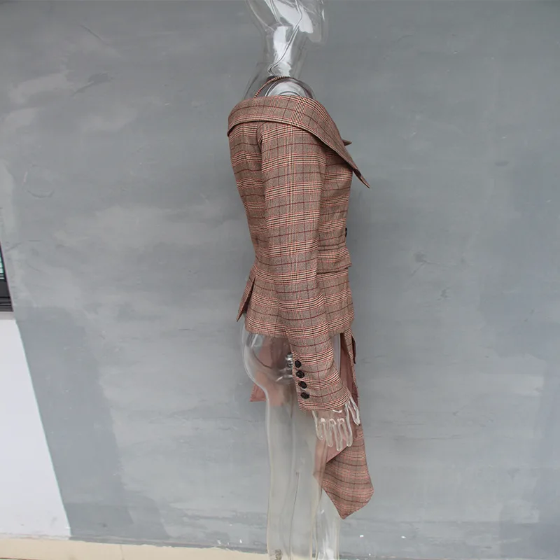 CHICEVER Plaid Blazer Female Women’s Jacket Irrgular Patchwork Slash Neck Long Sleeve Lace up Women Jackets Coat 2018 Autumn New