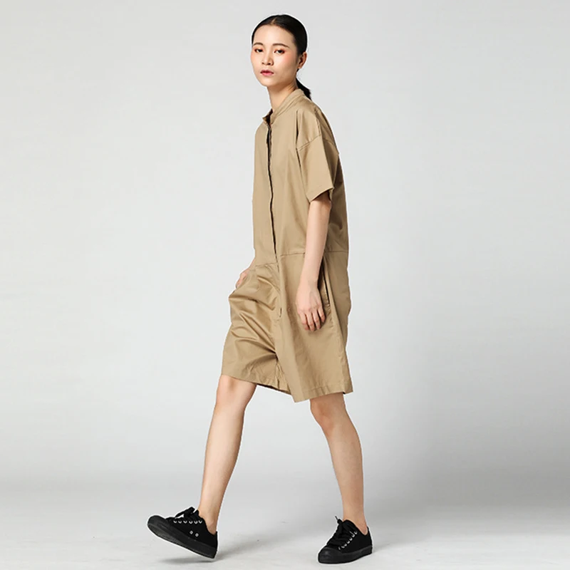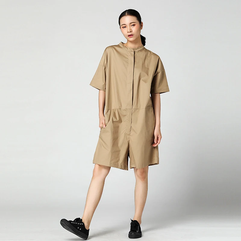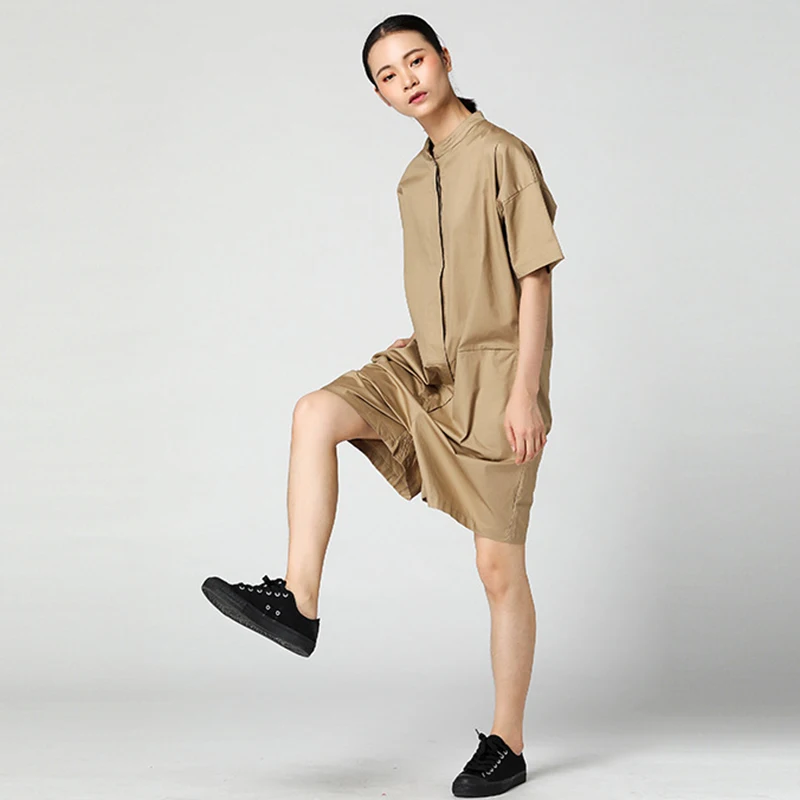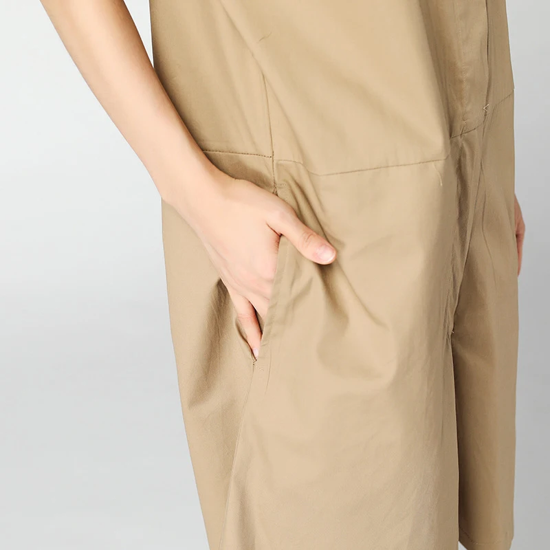CHICEVER Vintage Summer Trousers For Women Jumpsuits Loose Big Size Top Cotton With Pockets Female Jumpsuit Fashion Tide New
