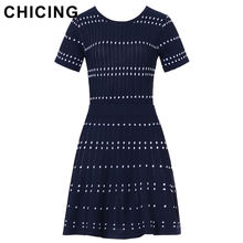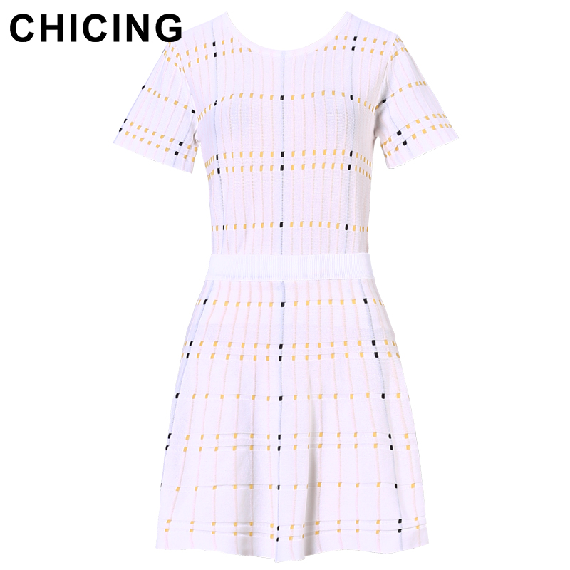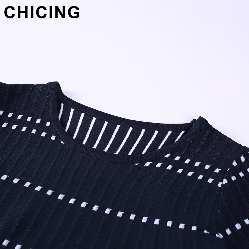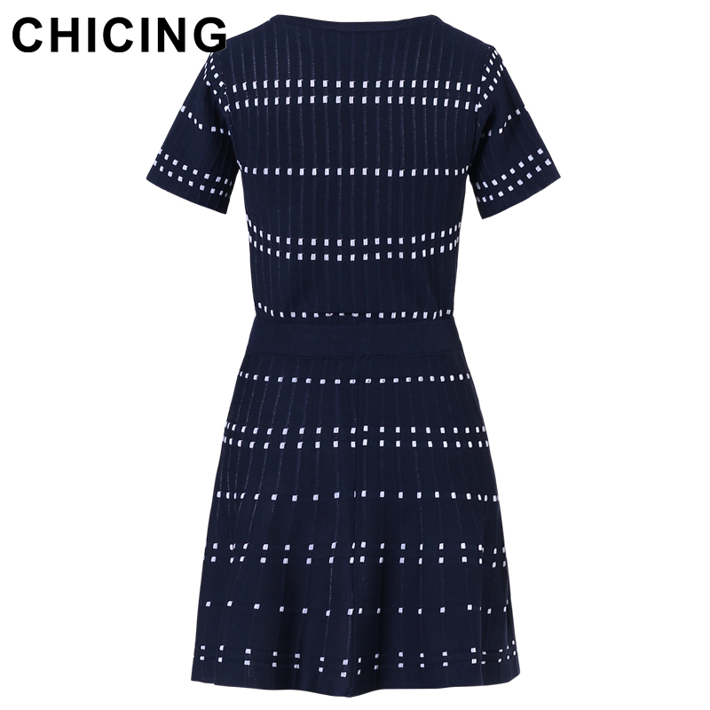 CHICING High Street Knitted Two Pieces Set Square Pattern Striped T-Shirt And Mini Skirt 2018 Ladies Sexy Set Saias A1706027