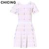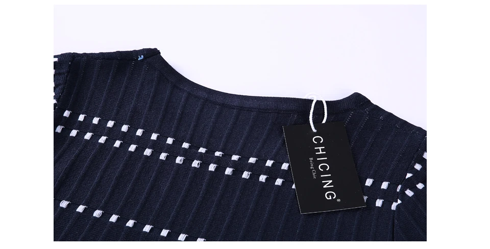 CHICING High Street Knitted Two Pieces Set Square Pattern Striped T-Shirt And Mini Skirt 2018 Ladies Sexy Set Saias A1706027
