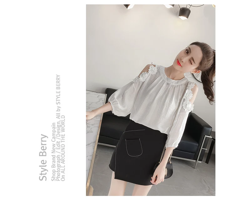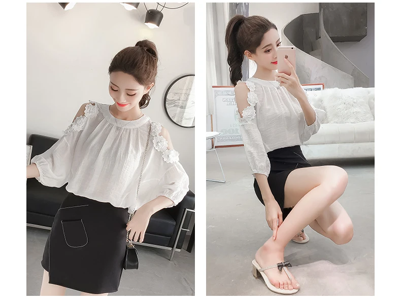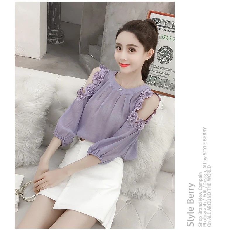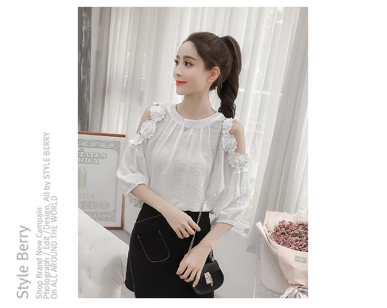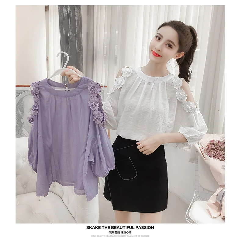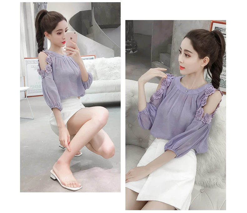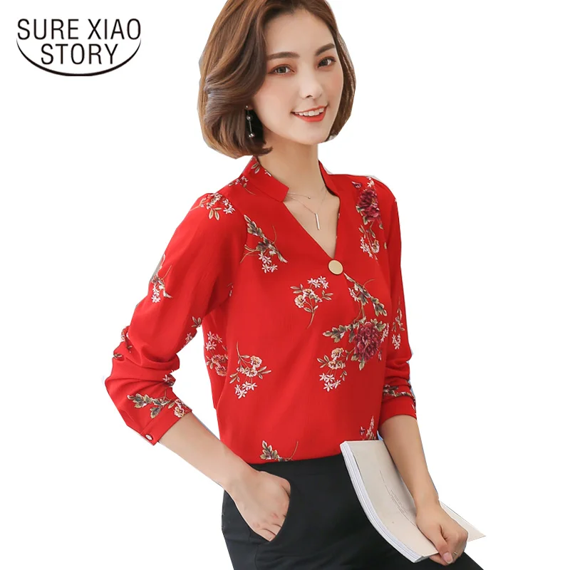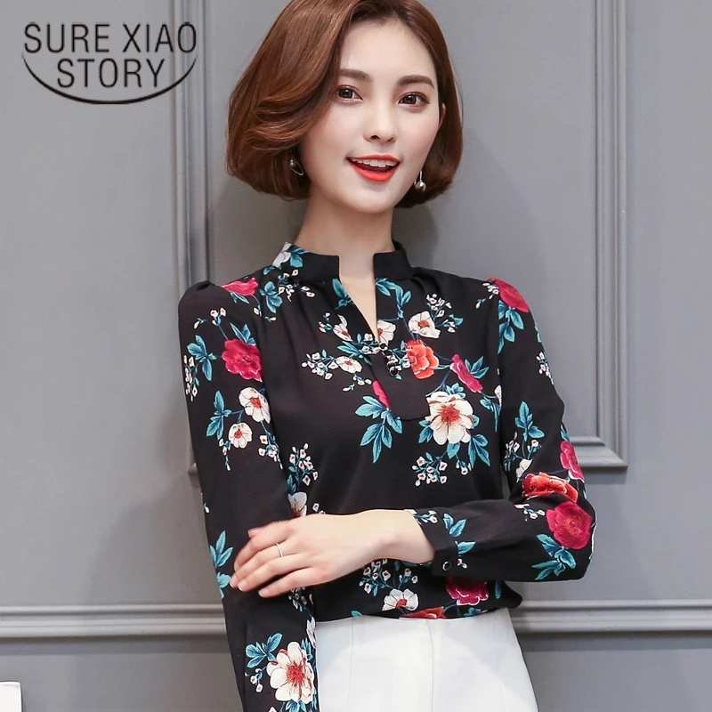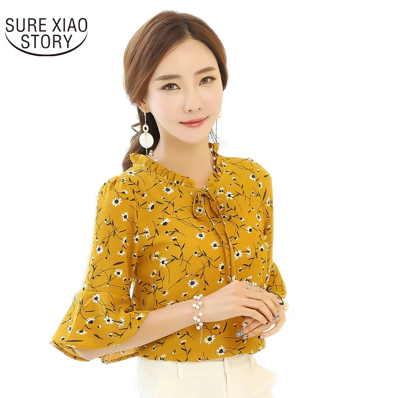 chiffon women tops new summer flowers sweet elegant solid women clothing casual blouses shirts sexy 2018 fashion tops 0539 40