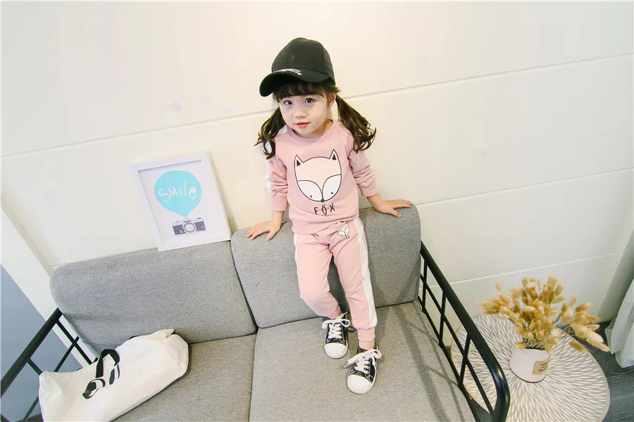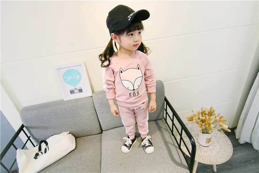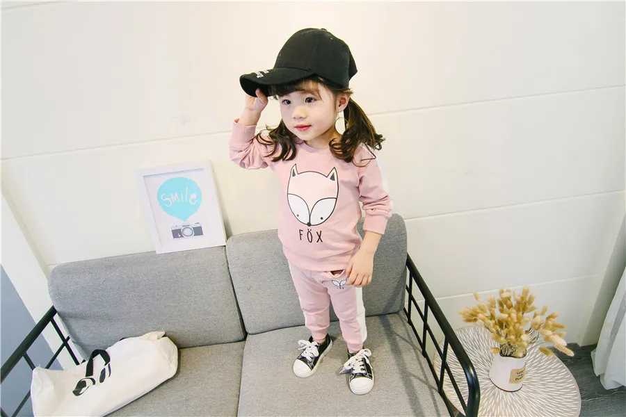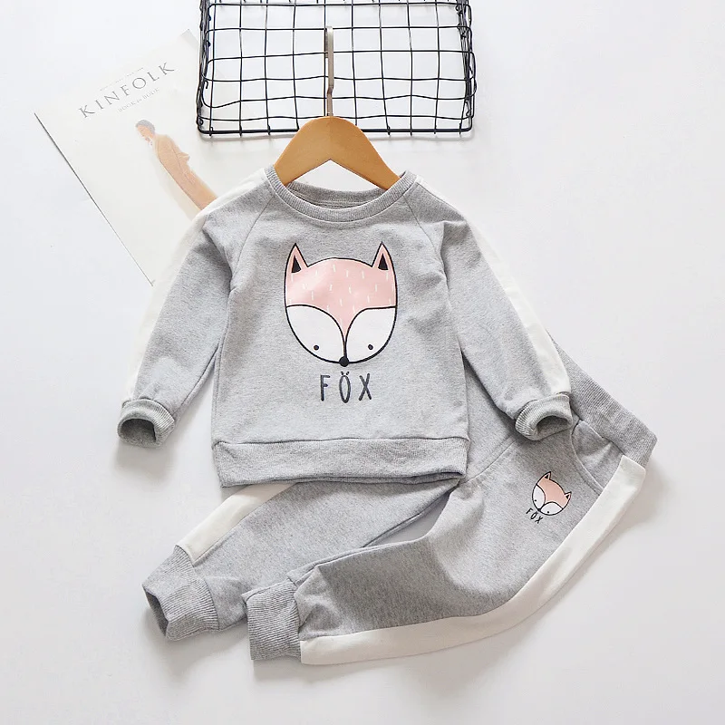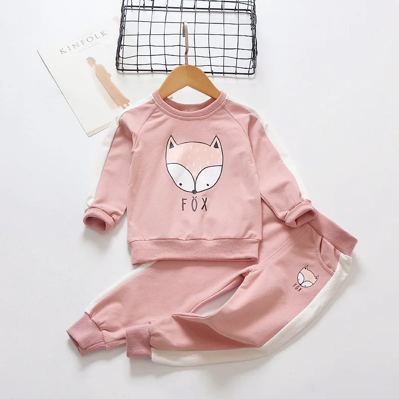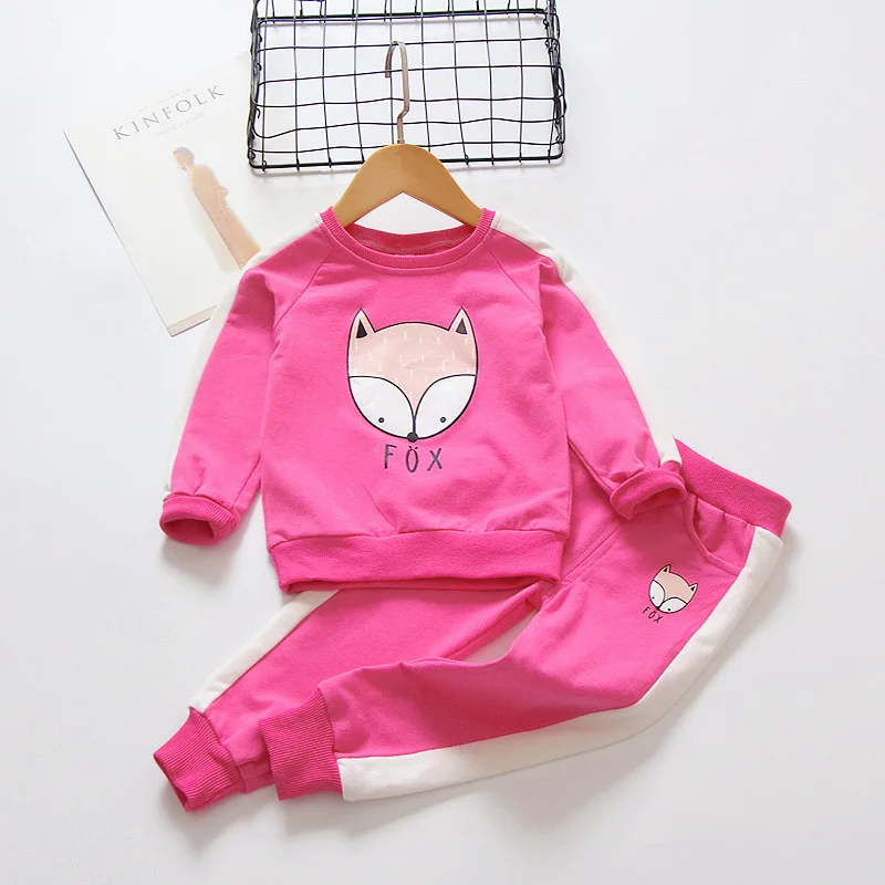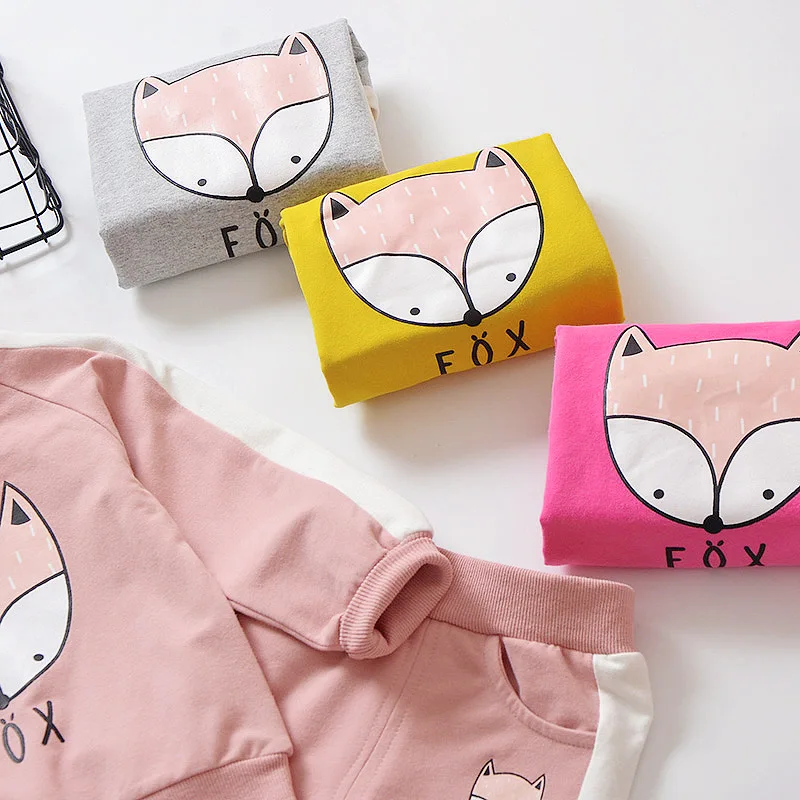 children clothes sets cotton suit children’s printed fox strip 2pcs 2018 autumn new children’s clothing girls kids clothes sets