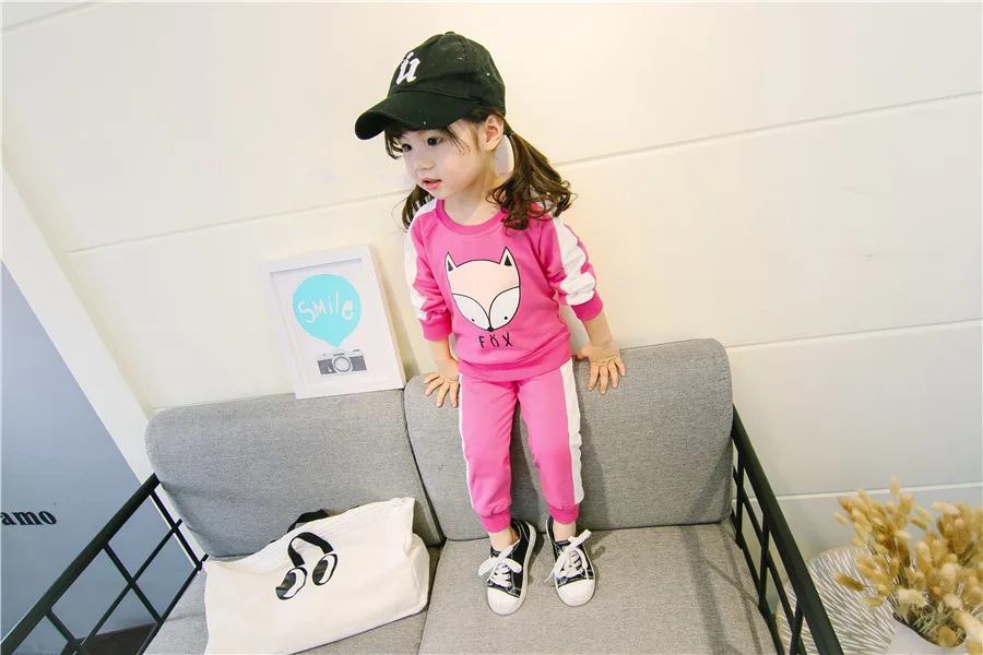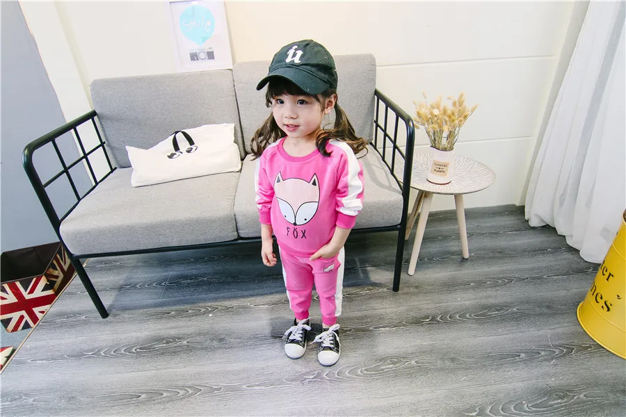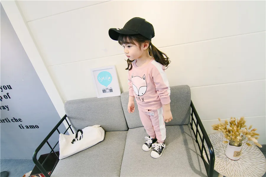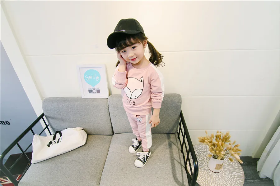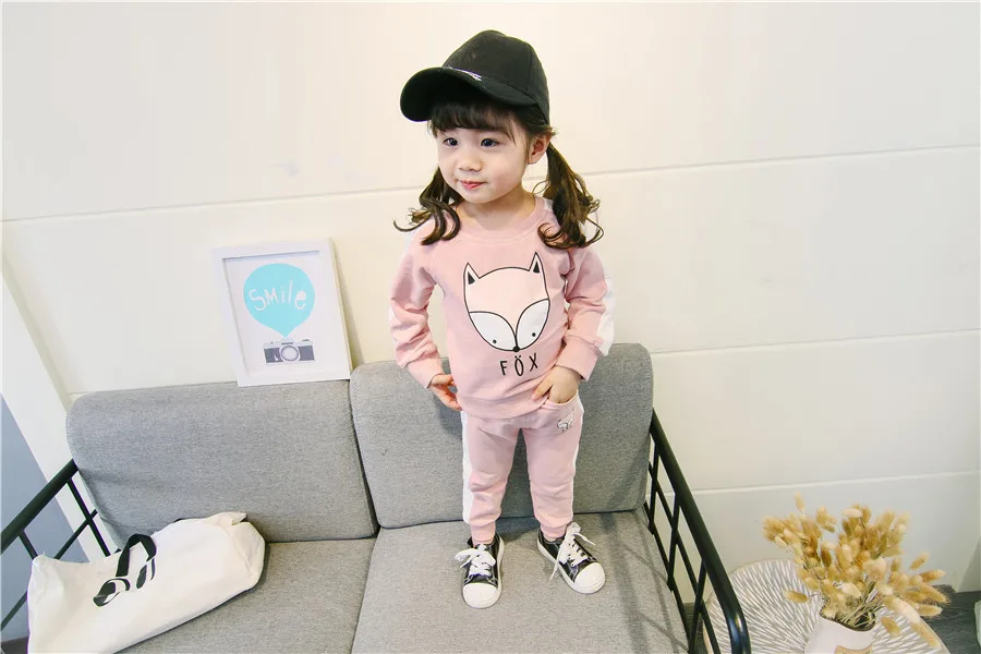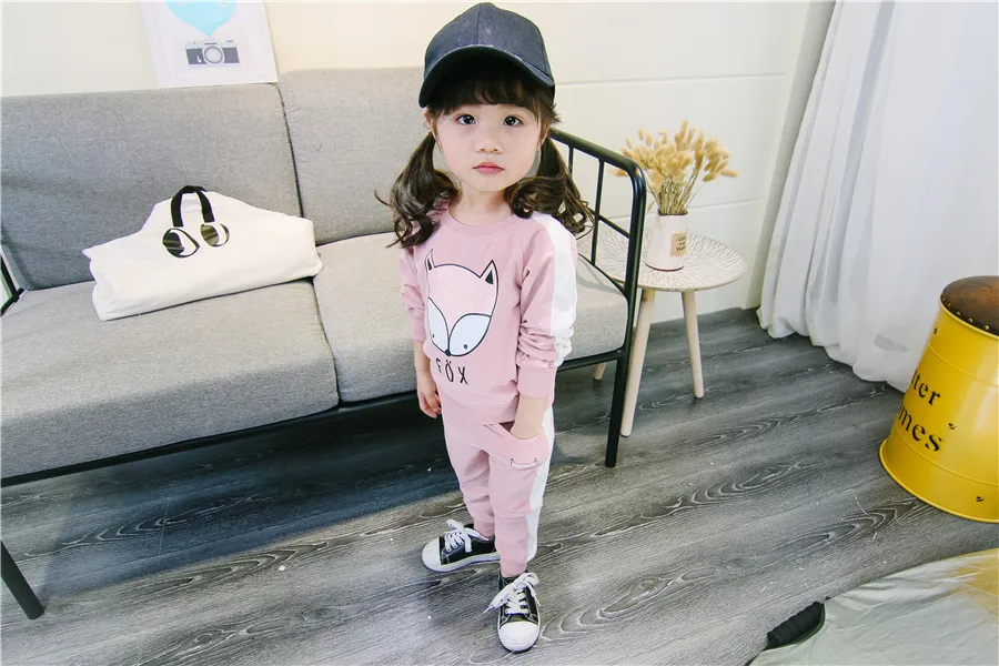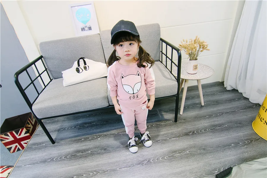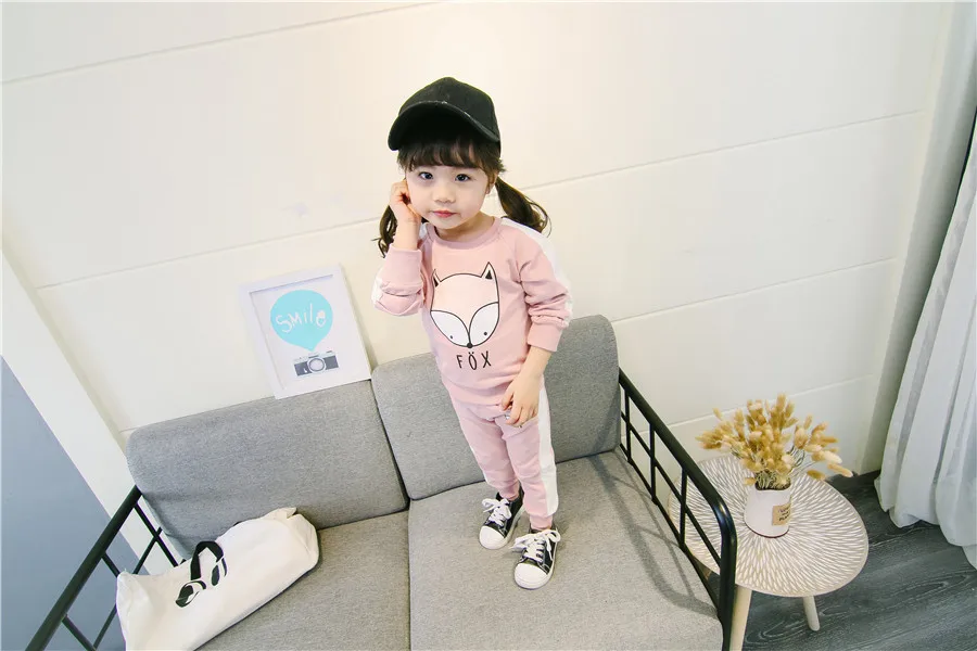 children clothes sets cotton suit children’s printed fox strip 2pcs 2018 autumn new children’s clothing girls kids clothes sets
