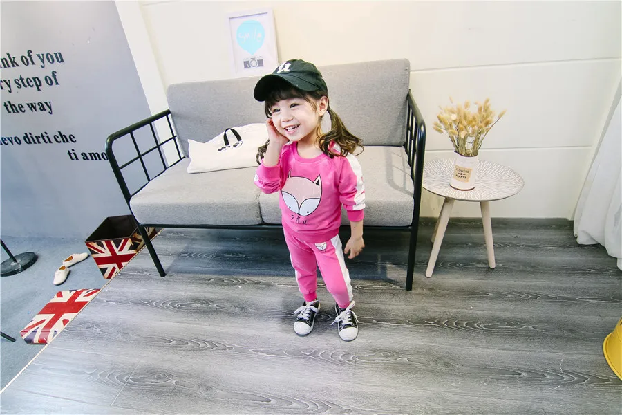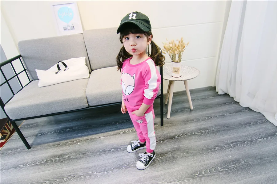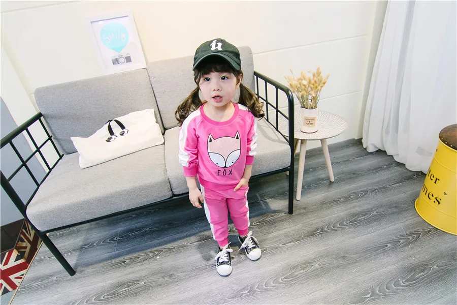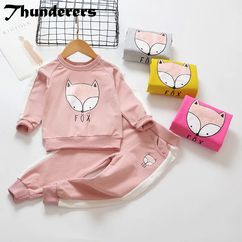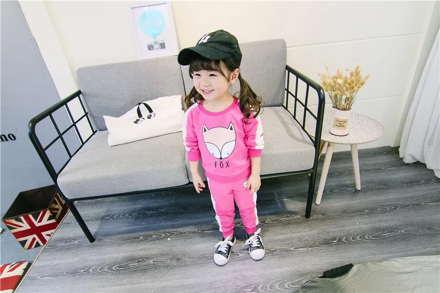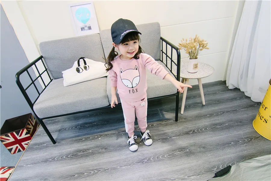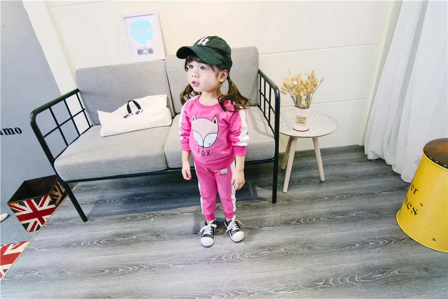 children clothes sets cotton suit children’s printed fox strip 2pcs 2018 autumn new children’s clothing girls kids clothes sets