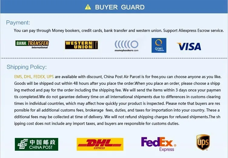 We are not responsible for any custom fees once the items have shipped. By purchasing our products, you consent that one or more packages may be shipped to you and may get custom fees when they arrive in your country.