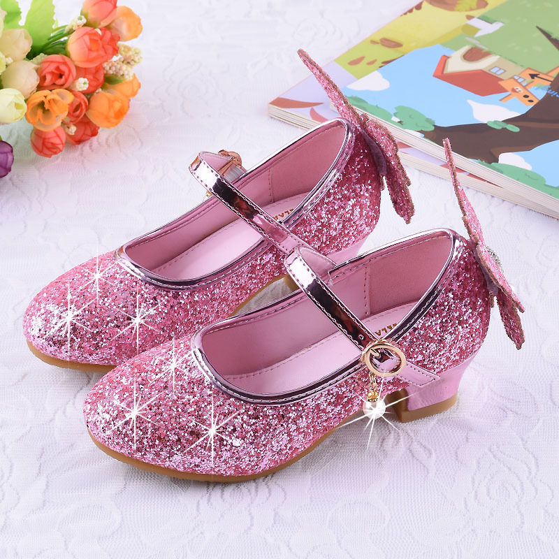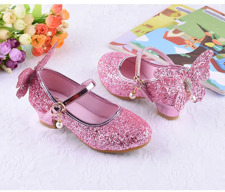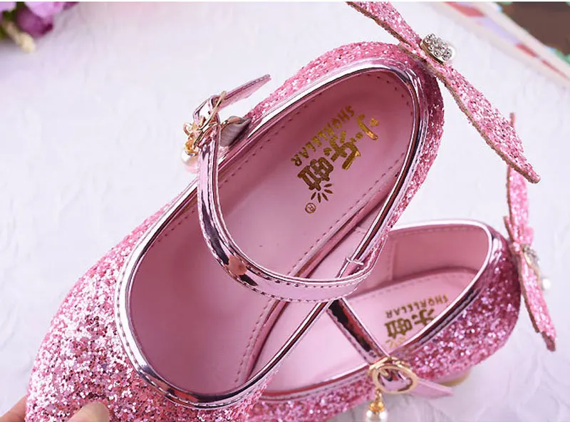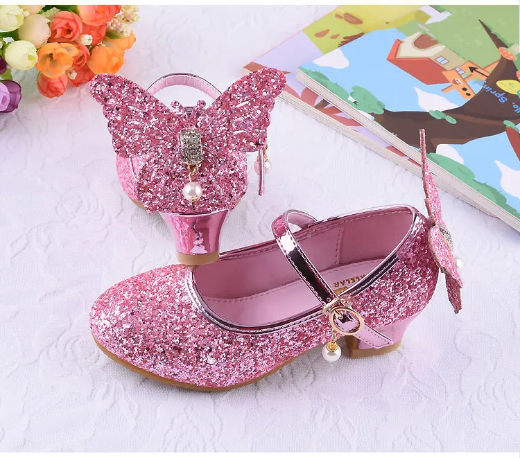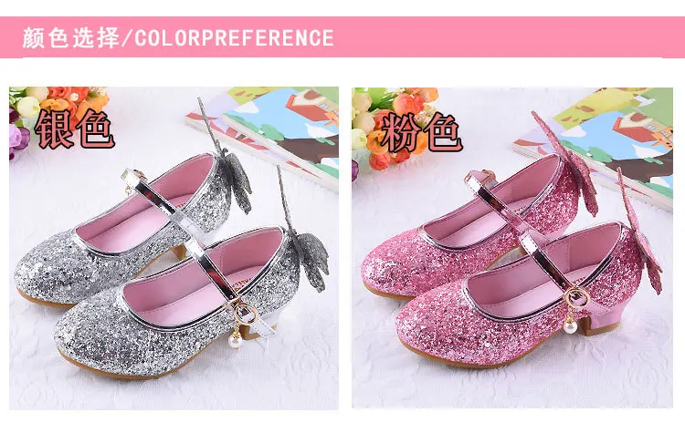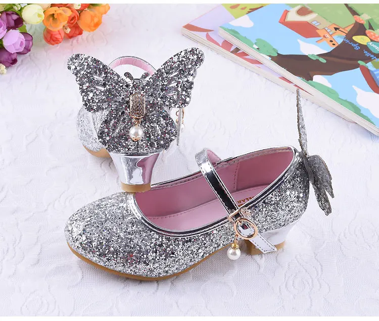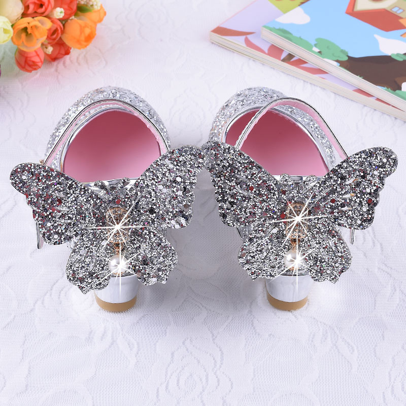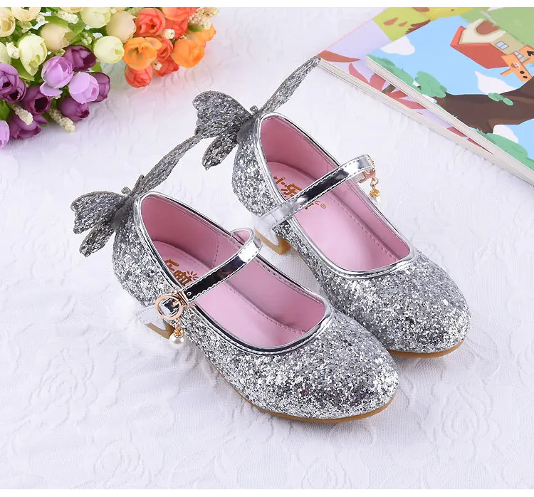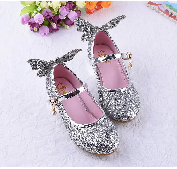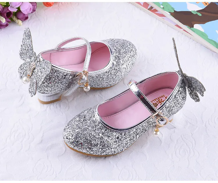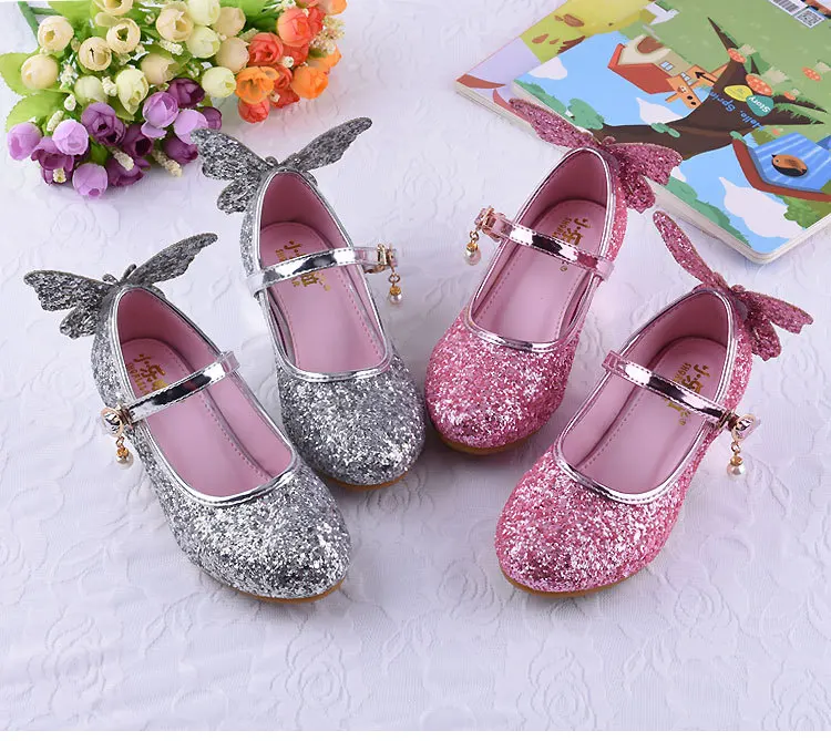 Children Shiny Wings Shoes Kids Low Heeled Leather Shoes Princess Sequined Bling Spring Autumn Crystal Dress Shoes Party Wedding