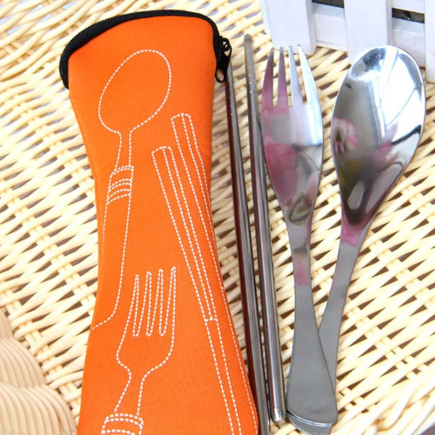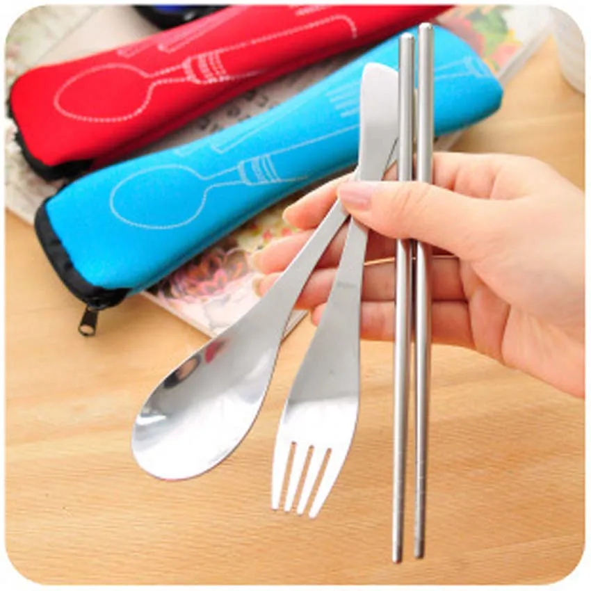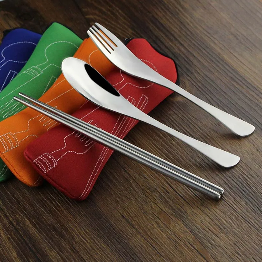 Children Stainless Steel Chopsticks Spoon Fork Kids Dinnerware Set with Bag for Lunch Box Bento Lunch