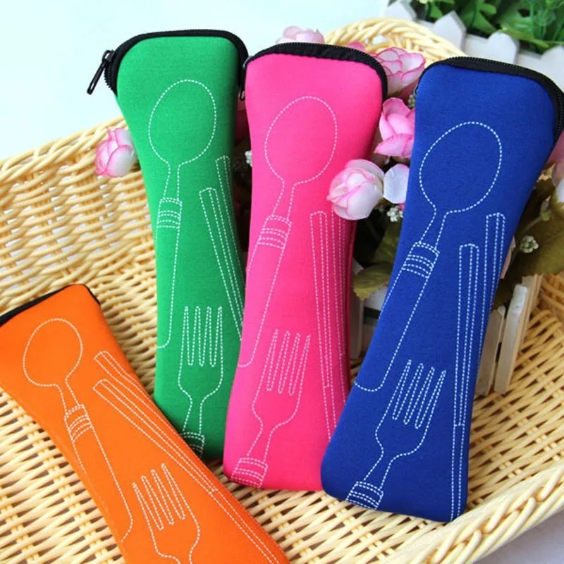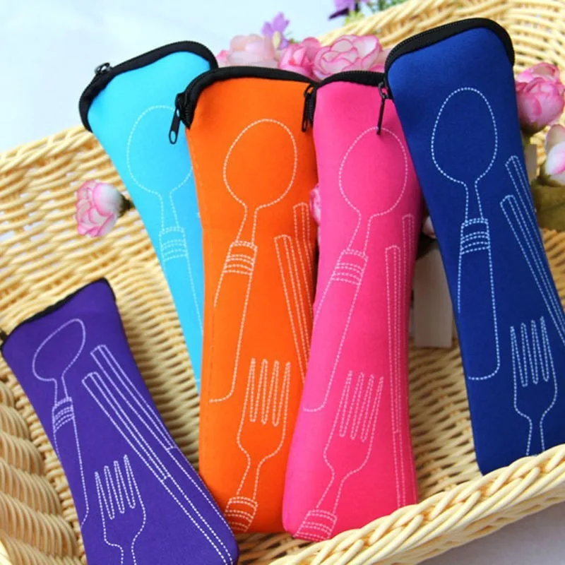 Children Stainless Steel Chopsticks Spoon Fork Kids Dinnerware Set with Bag for Lunch Box Bento Lunch