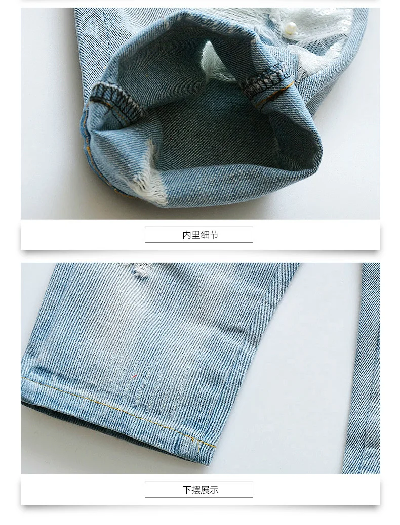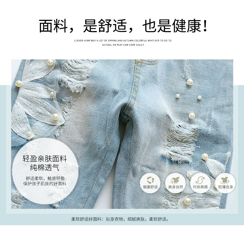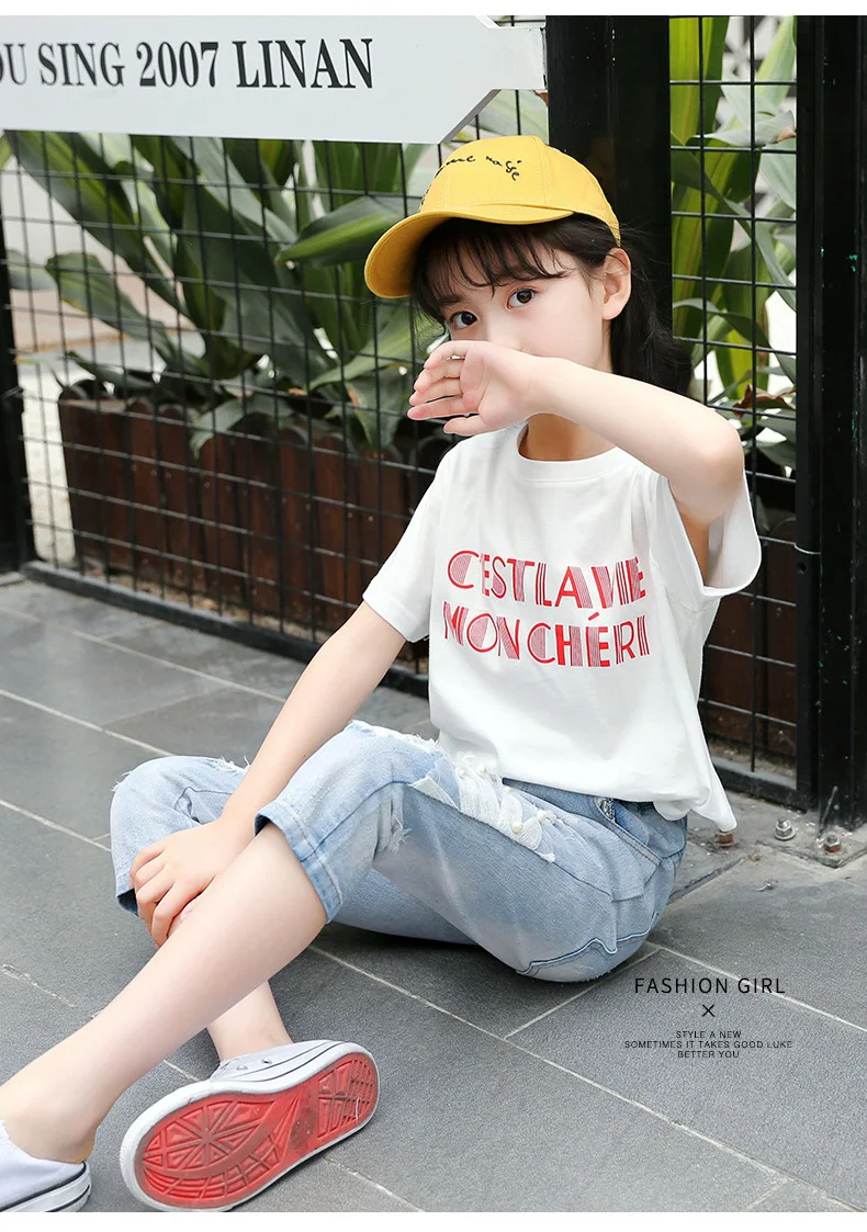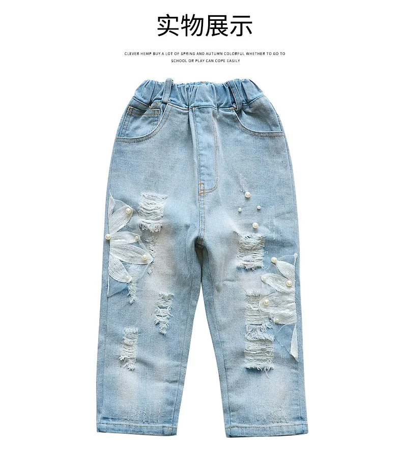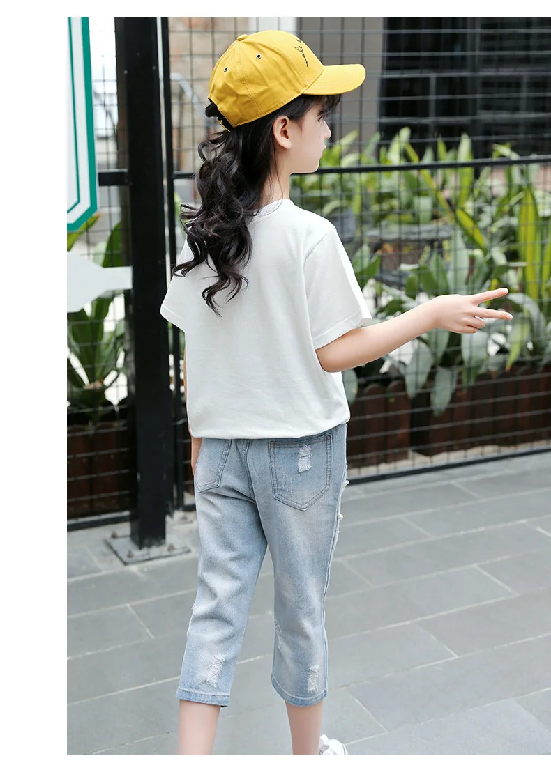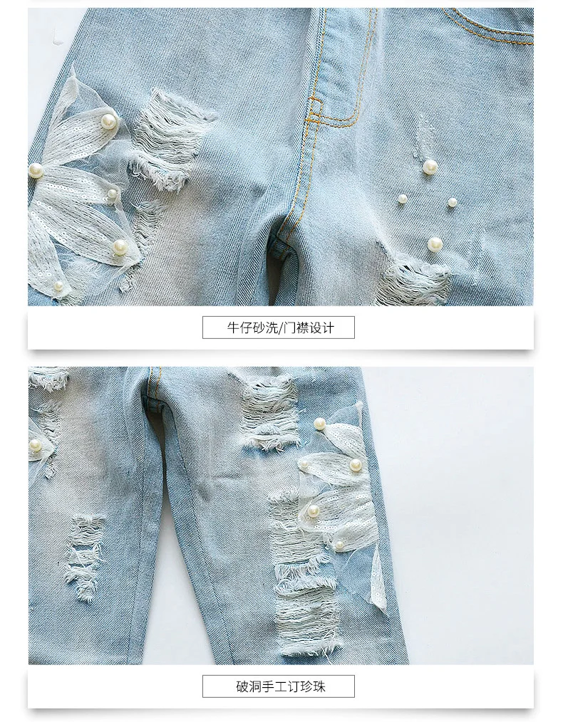 Children Summer Hot Shorts For Big Girls Hole Clothes New Elastic Wash Pearl Denim Pants Baby Kids Cotton Leggings 6 To 14 Years