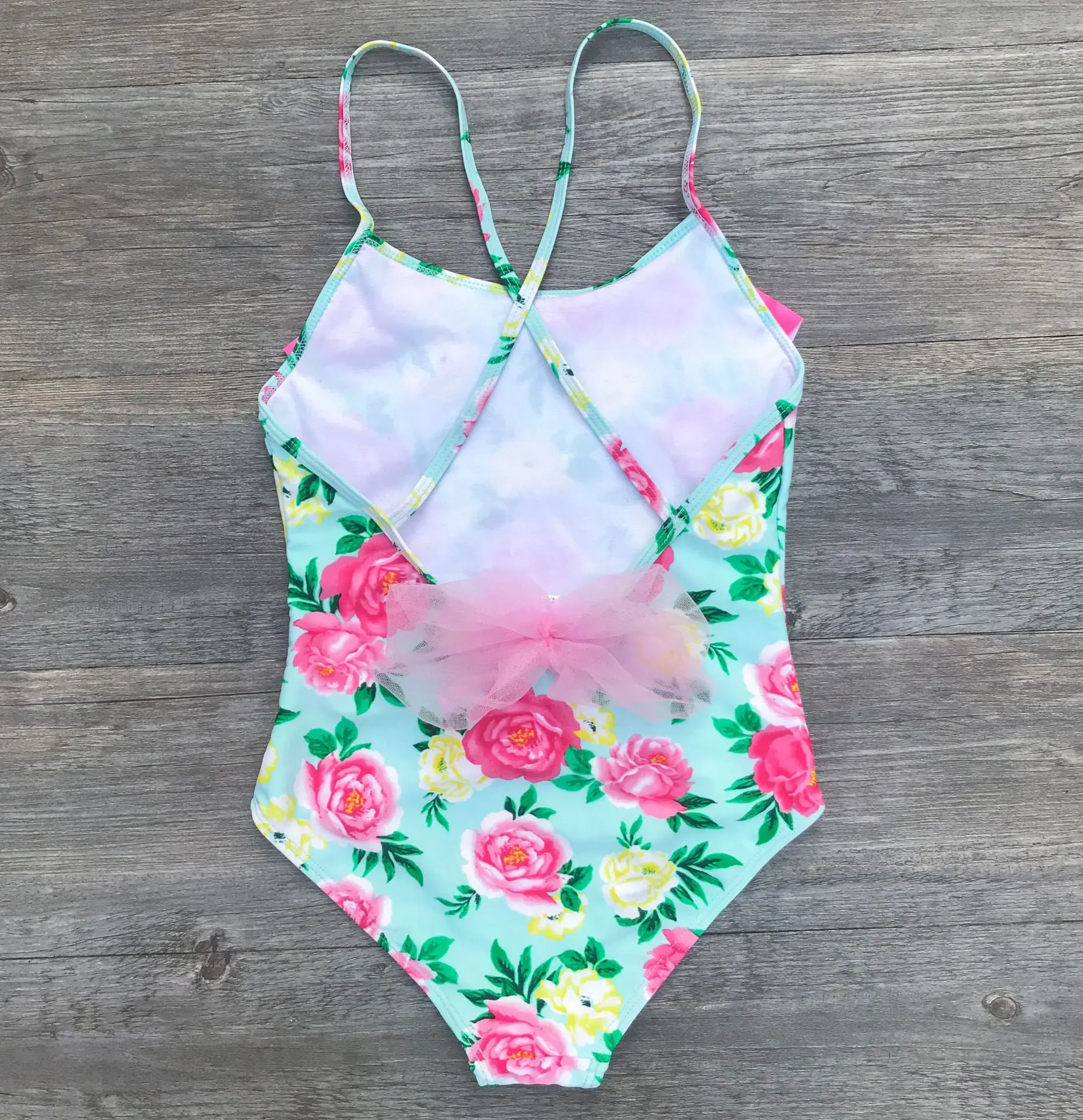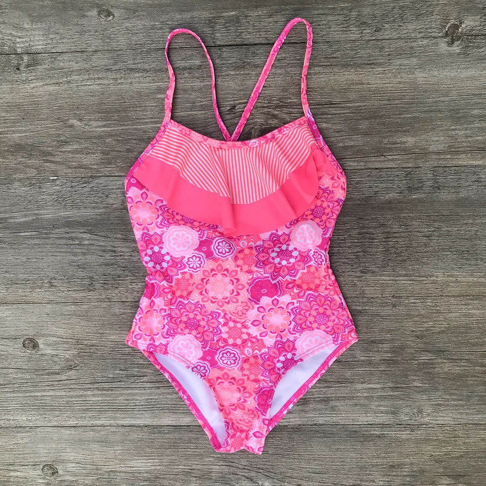 Children Swimwear Baby Kids Cute Bikinis Girls One Piece Swimsuit Floral Print Halter Bowknot High Waist Beachwear Bathing Suit