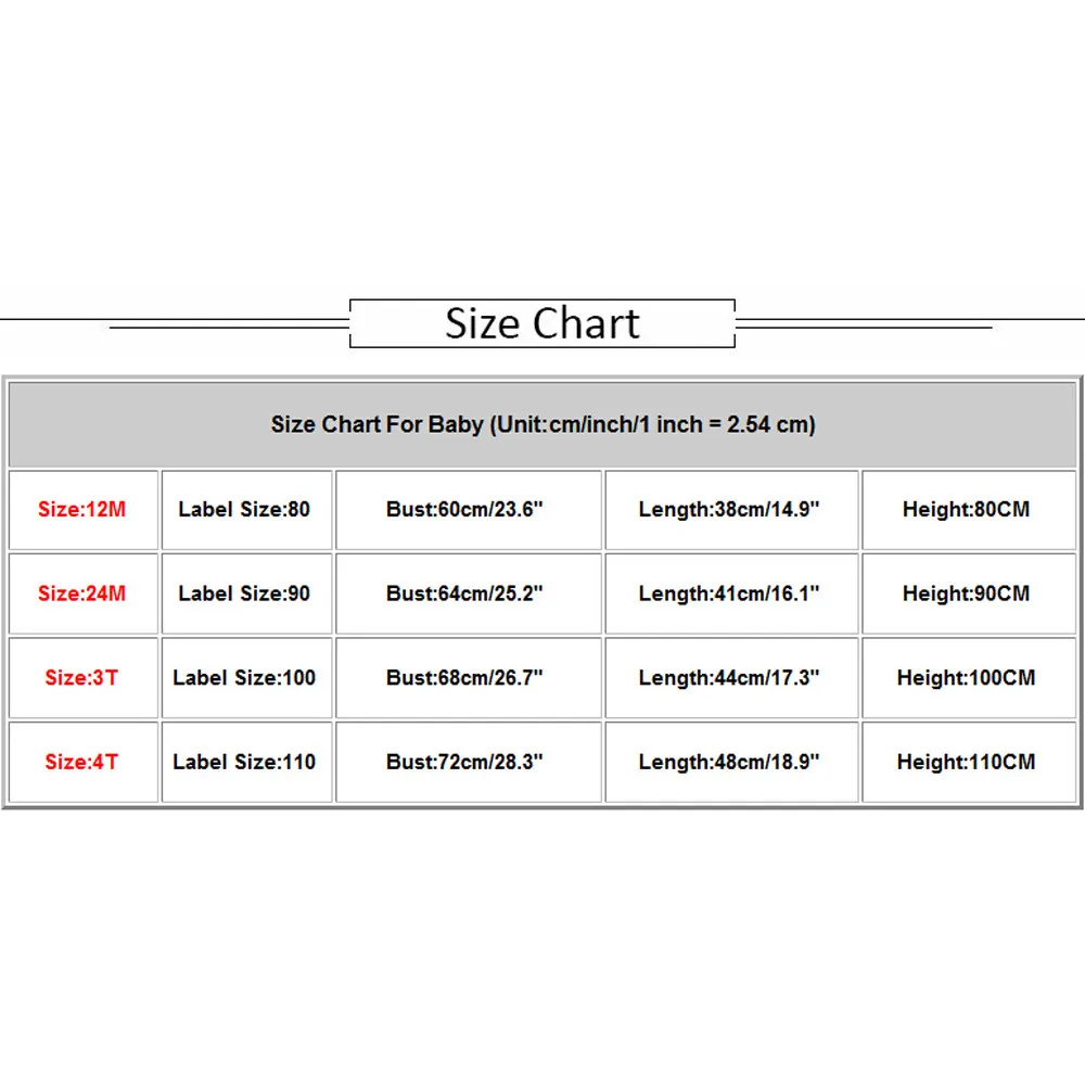 Size Chart For Baby (Unit:cm/inch/1 inch = 2.54 cm)