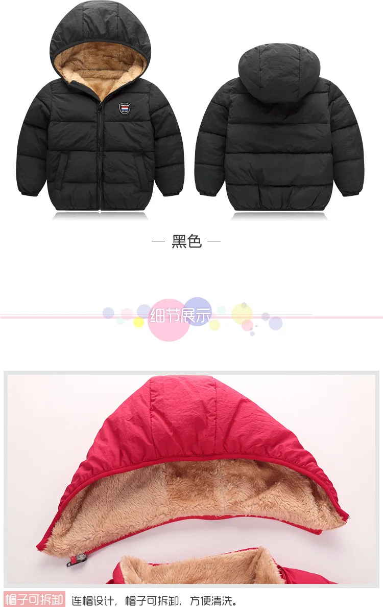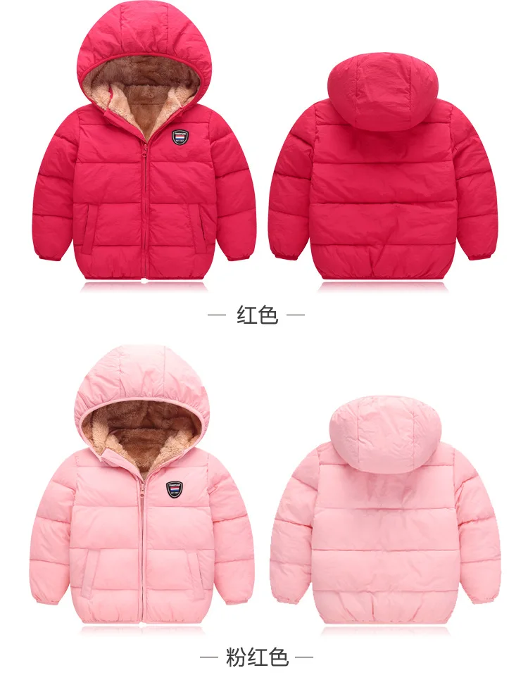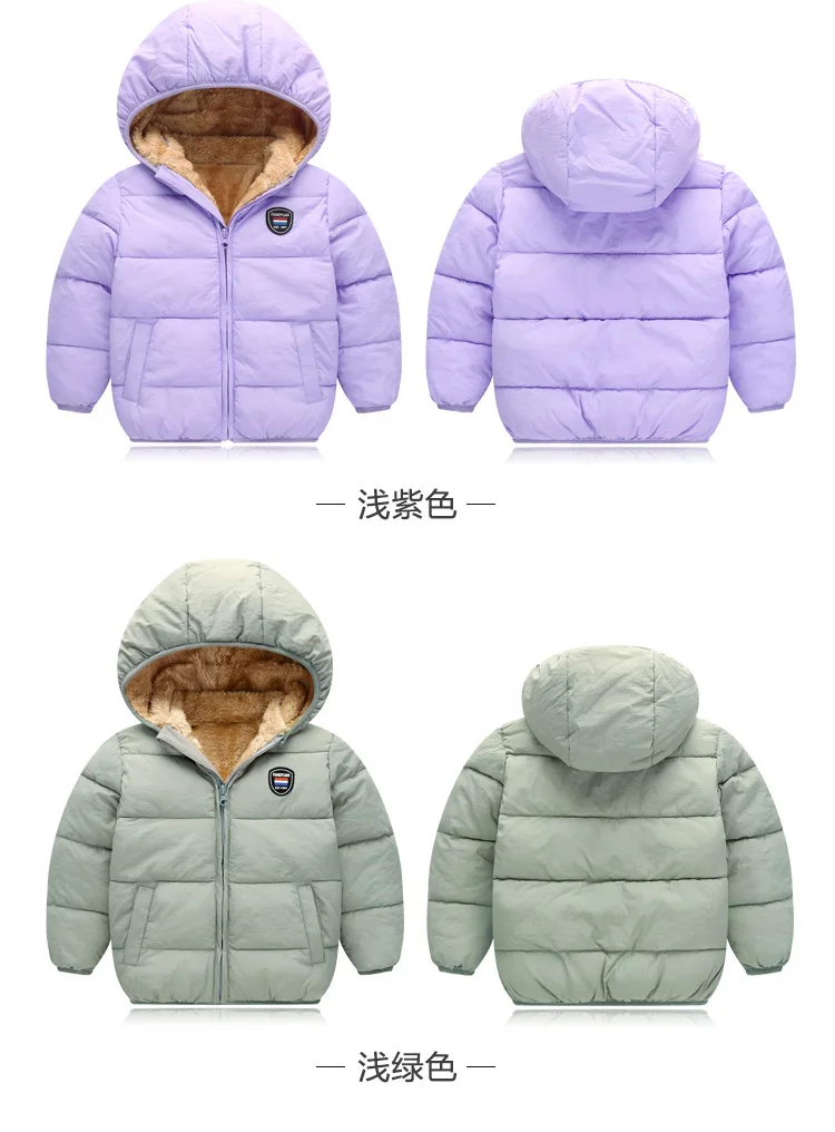 Children’s Fake Lambskin Coat Boys Cotton Jacket Girls Hooded Solid Color Coats Baby Thick Clothing Outwear