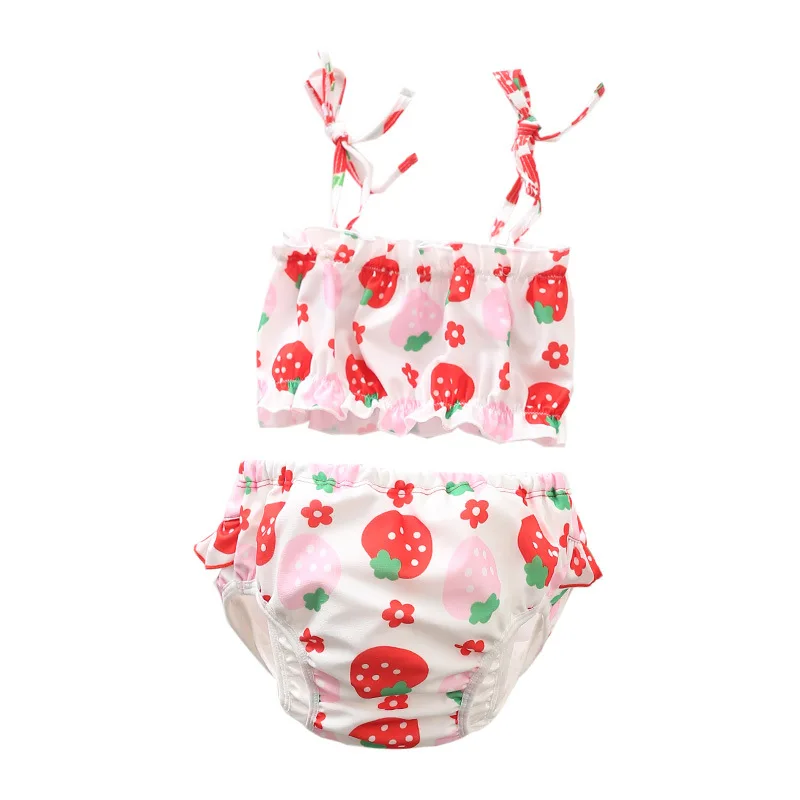 Children’s Swimwear Two Pieces Flower Strawberry Baby girls Swimsuit Waterproof Diaper Swimming Trunks Summer Bathing Wear