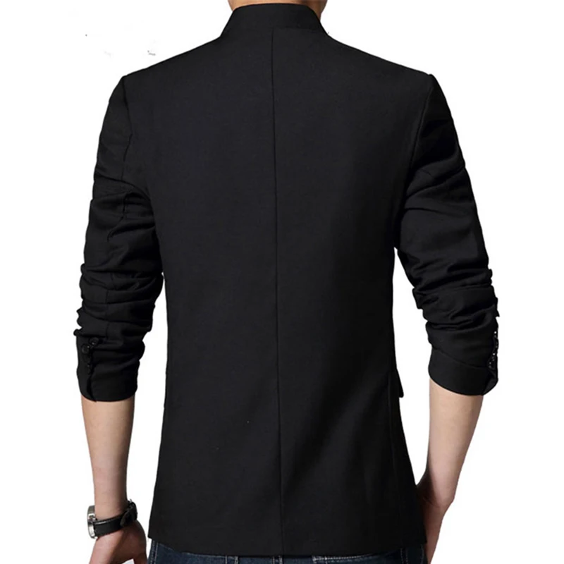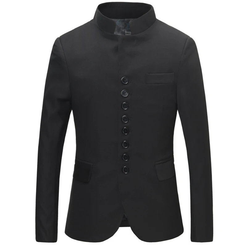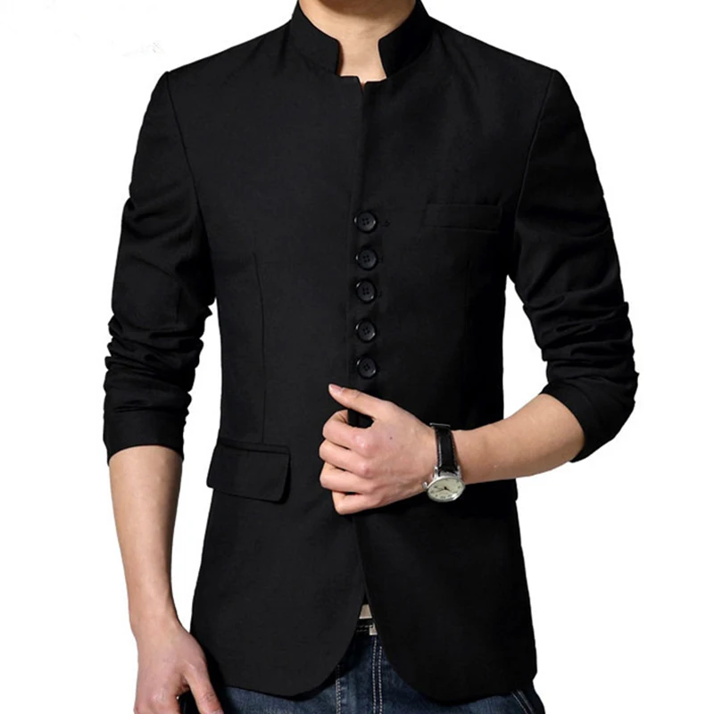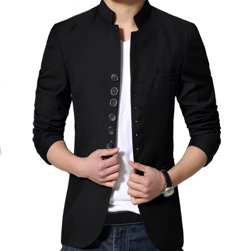 Chinese Style Mandarin Collar Suit Jacket Single Breasted Tunic Suit Jacket Mens Black Jacket Stand Collar