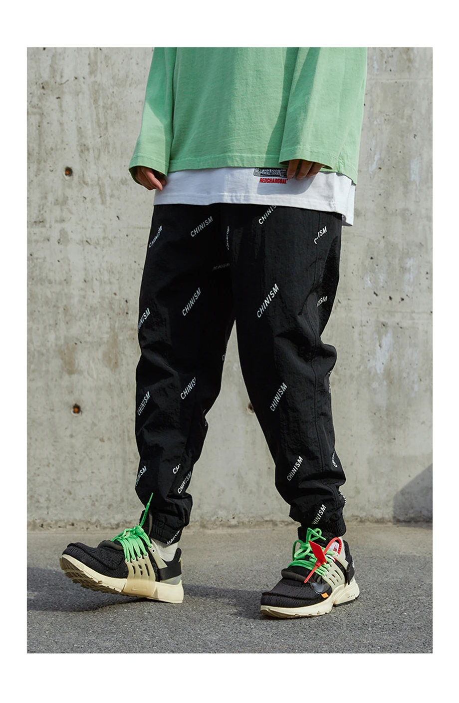 CHINISM Logo Full Printed Jogger Pants Men Loose Letter Embroidery Streetwear Cotton Jogger Pants 2018 Autumn New Fashion Pants