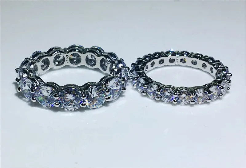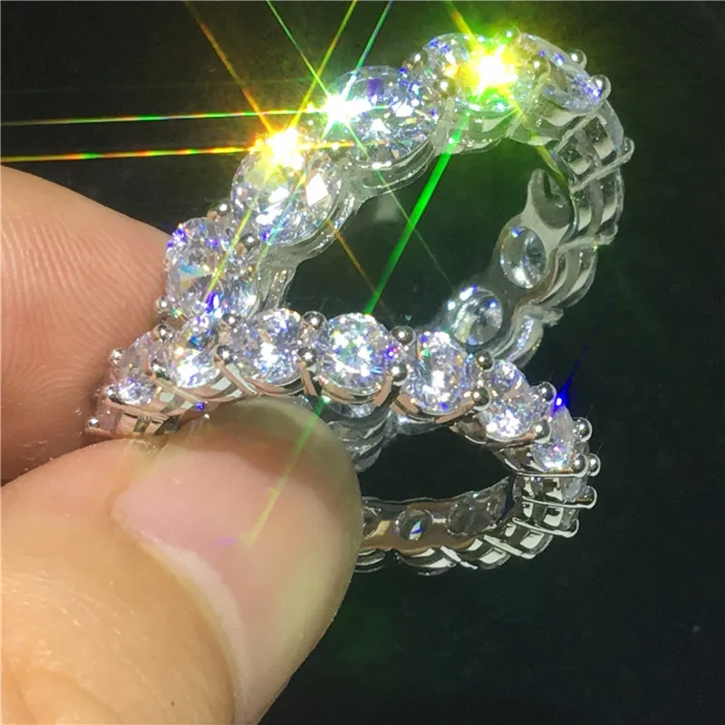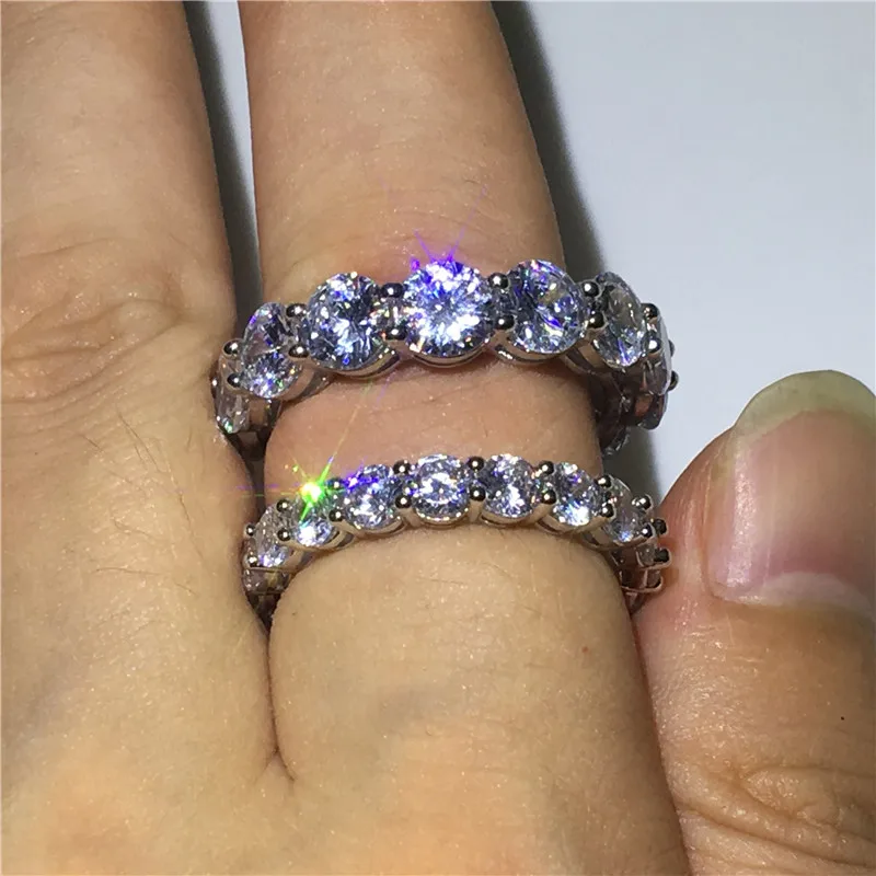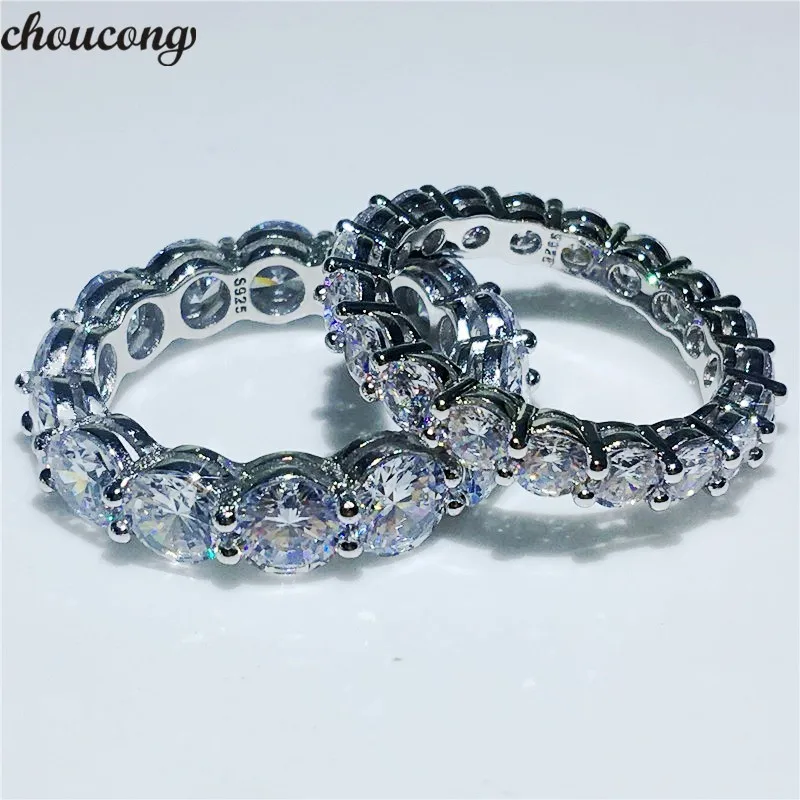 choucong Handmade Wedding Band Ring Round Cut 4MM/6MM 5A Zircon Sona Cz 925 Sterling Silver Engagement Rings for Women Men Gift