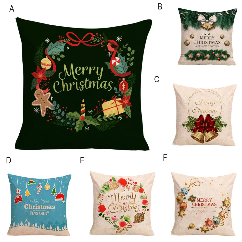 Christmas Decoration Pillow Cover Happy Christmas Sofa Chairs Cushion Cover Square Pillow Case Home Decor Xmas Pillow Covers