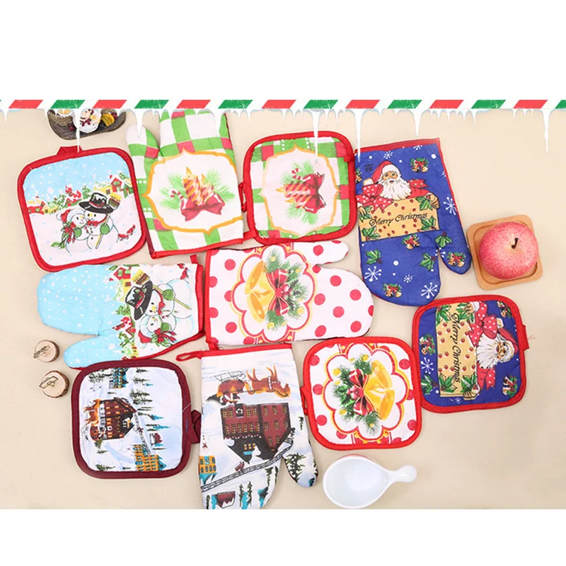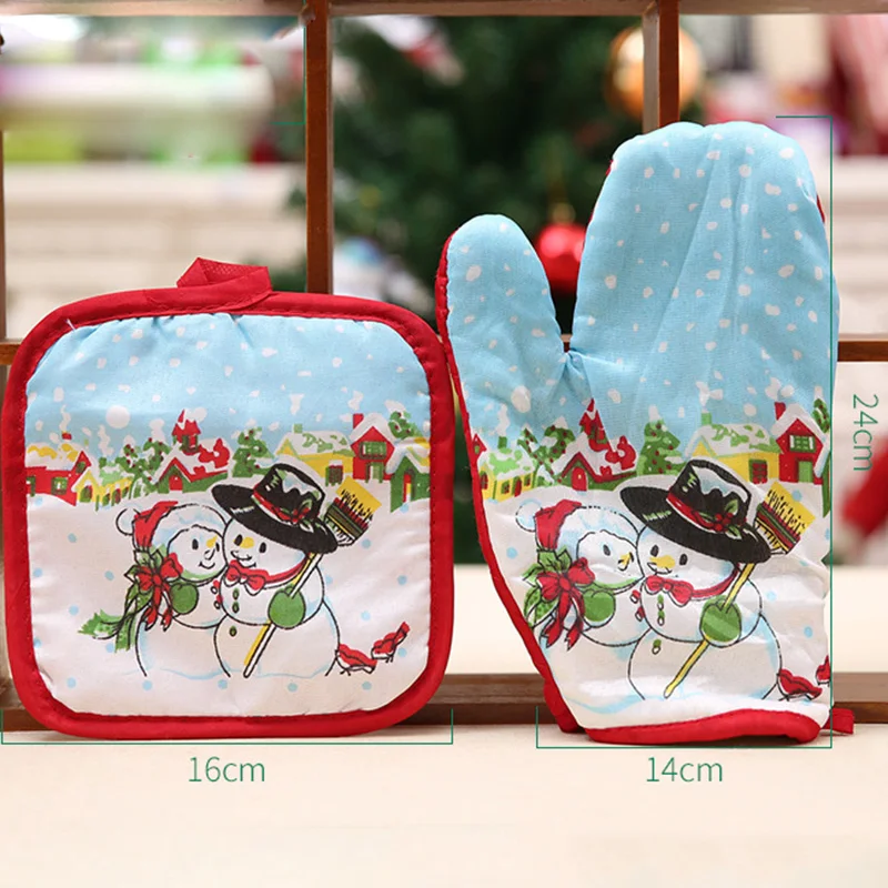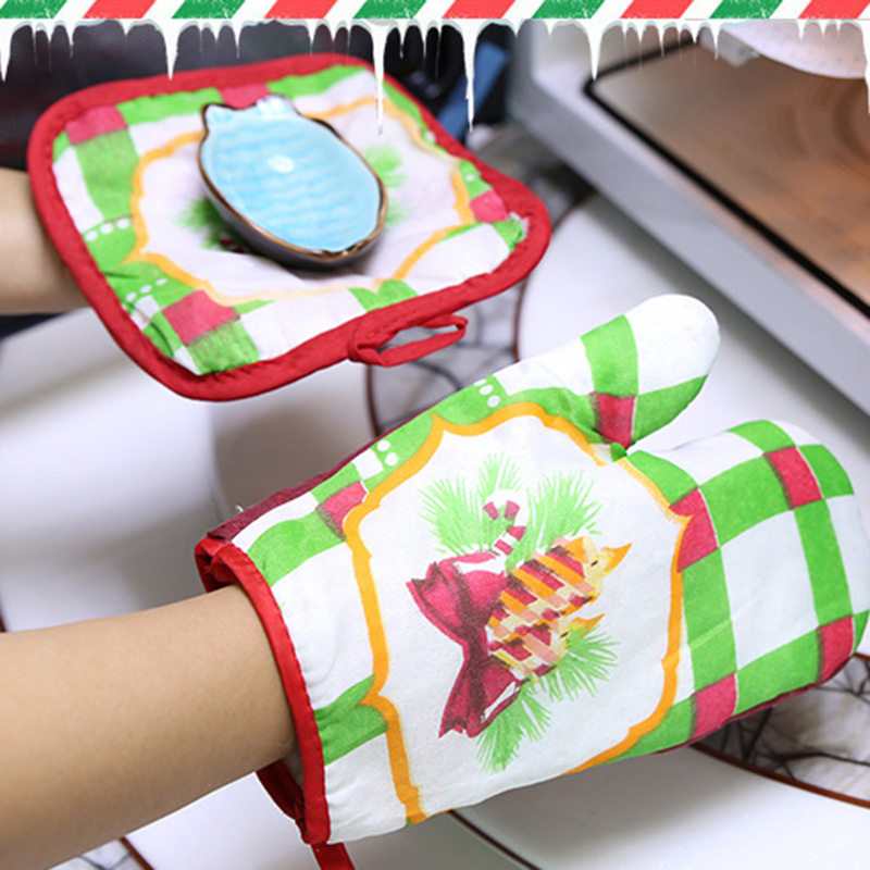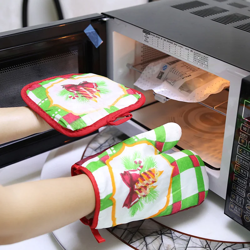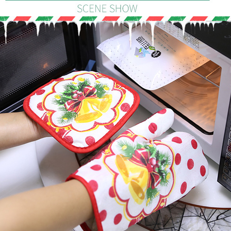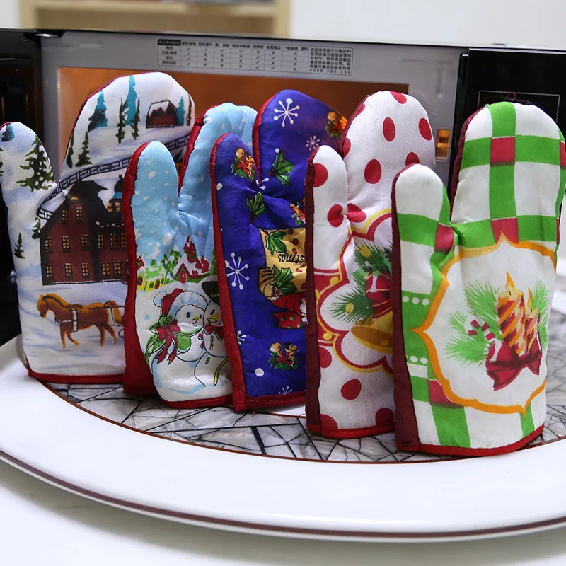 Christmas Microwave Oven Mitt Insulation Gloves Pot Holder Thicken Non-slip Kitchen Cooking Baking High Temperature Oven Glove