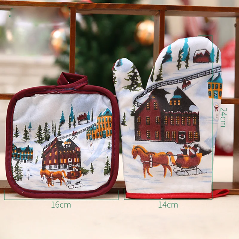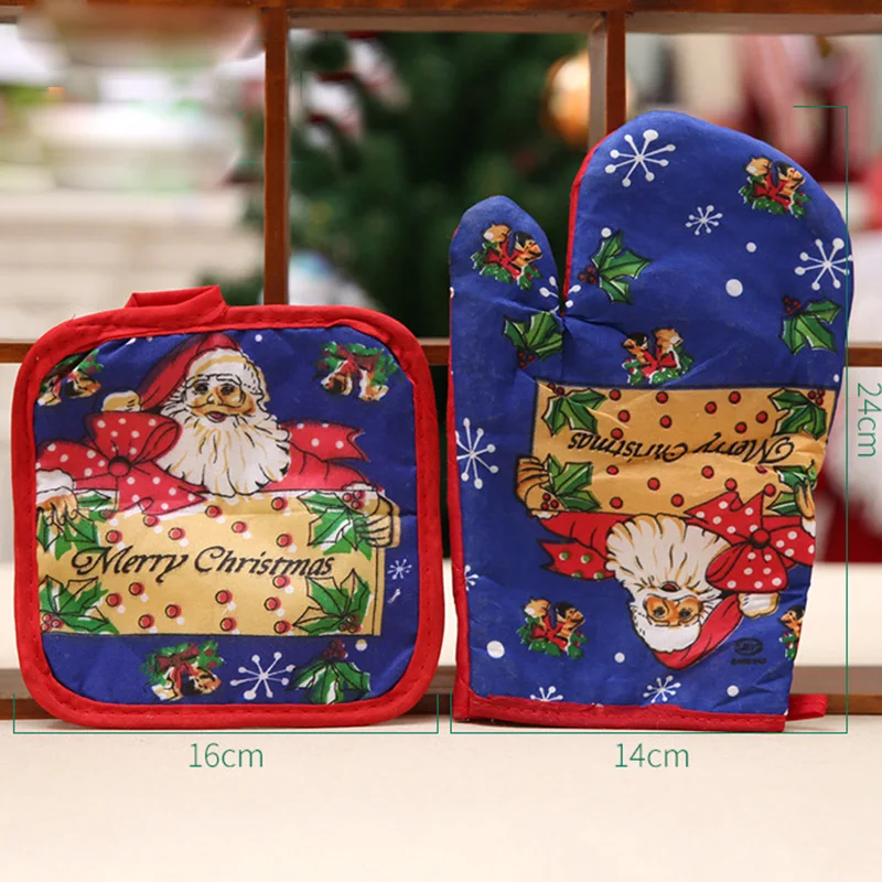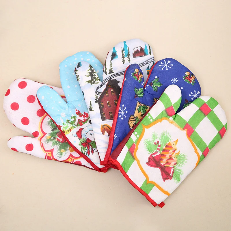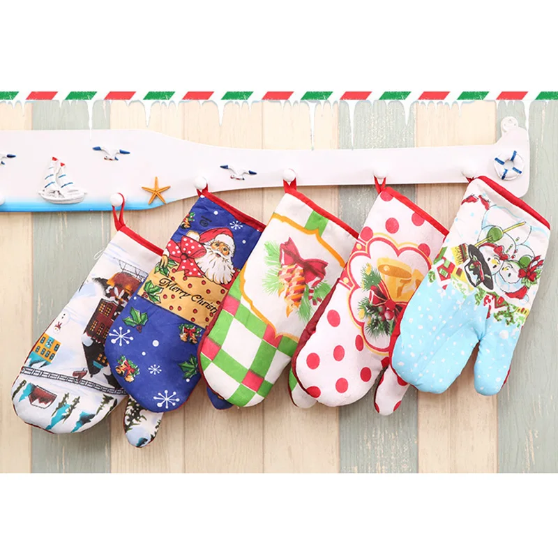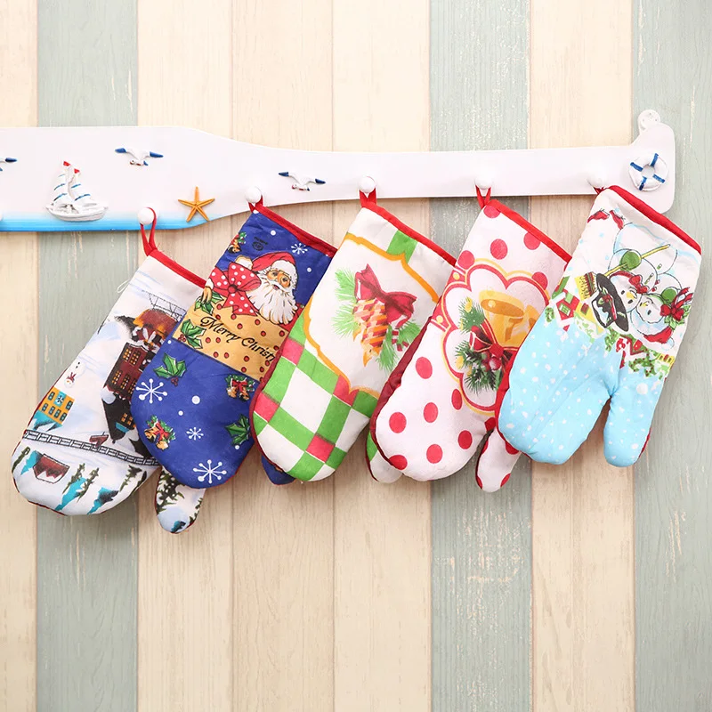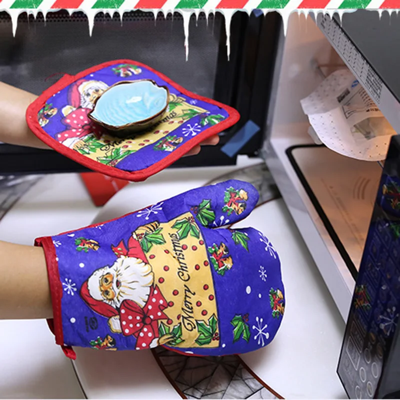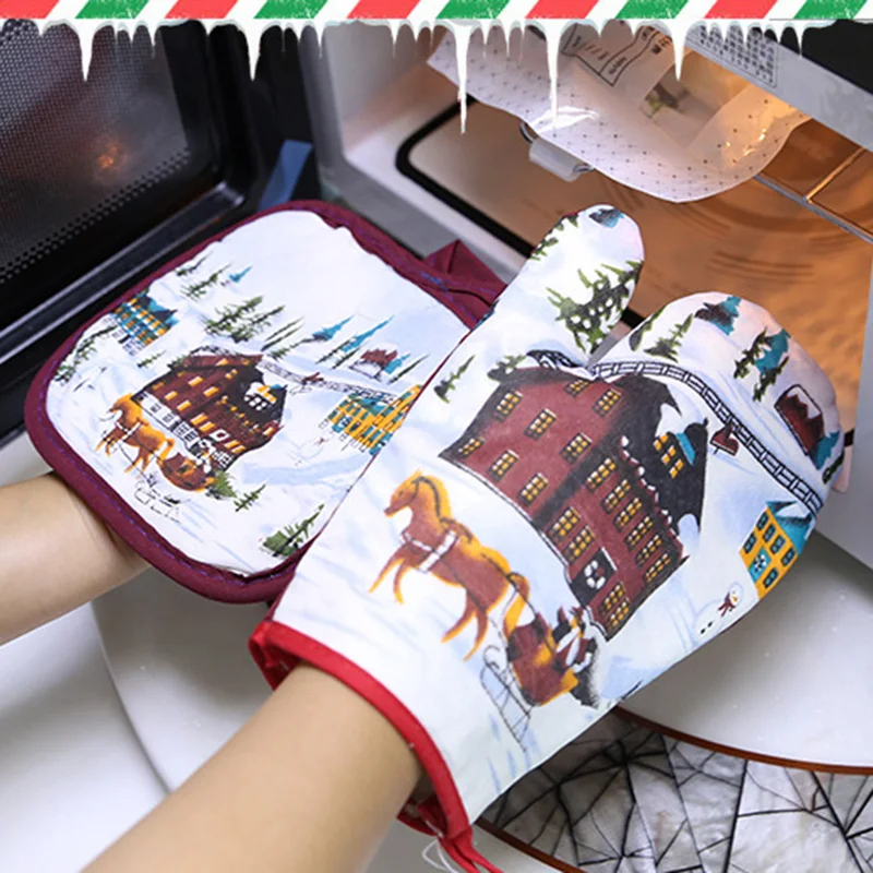 Christmas Microwave Oven Mitt Insulation Gloves Pot Holder Thicken Non-slip Kitchen Cooking Baking High Temperature Oven Glove