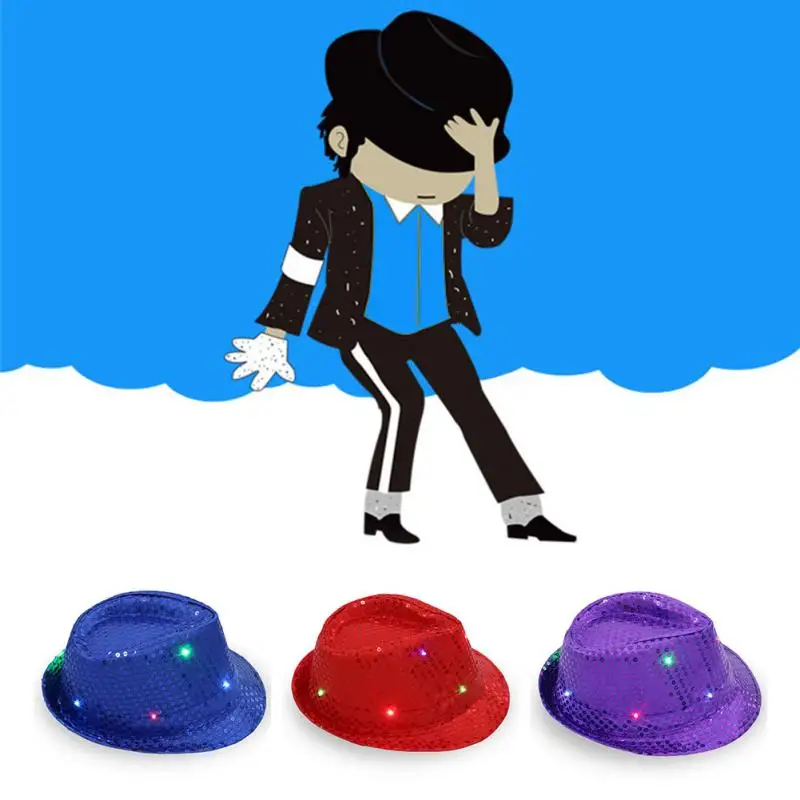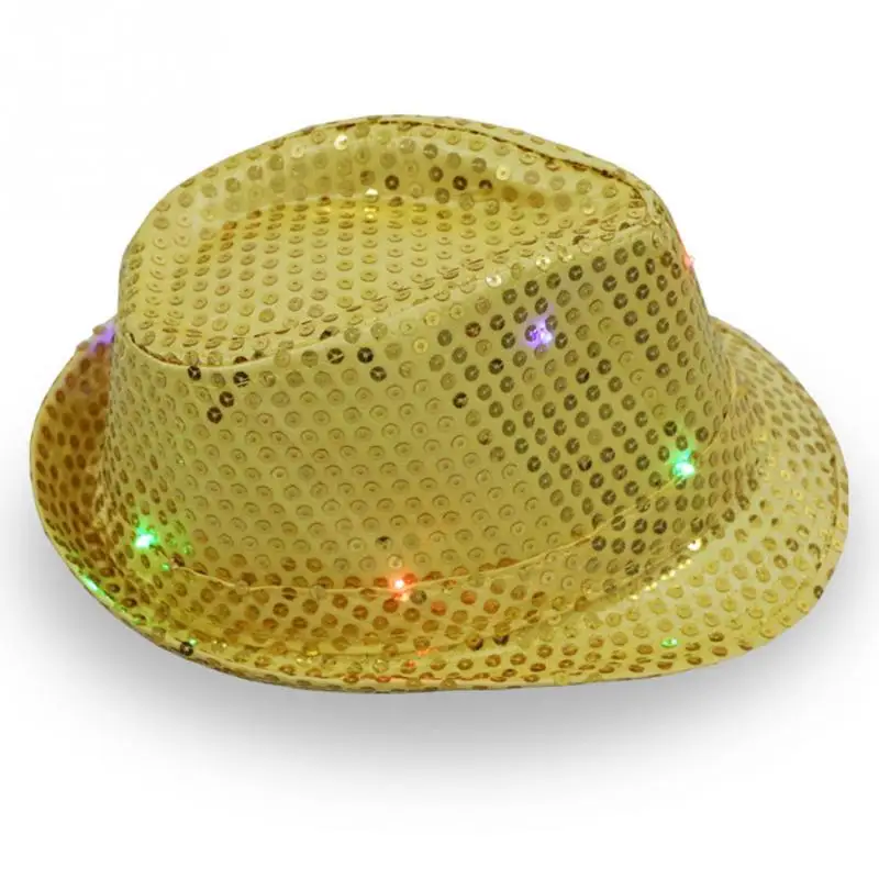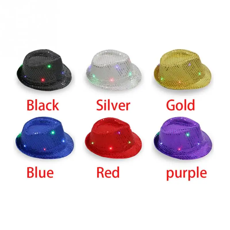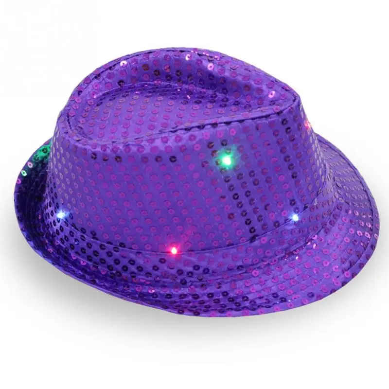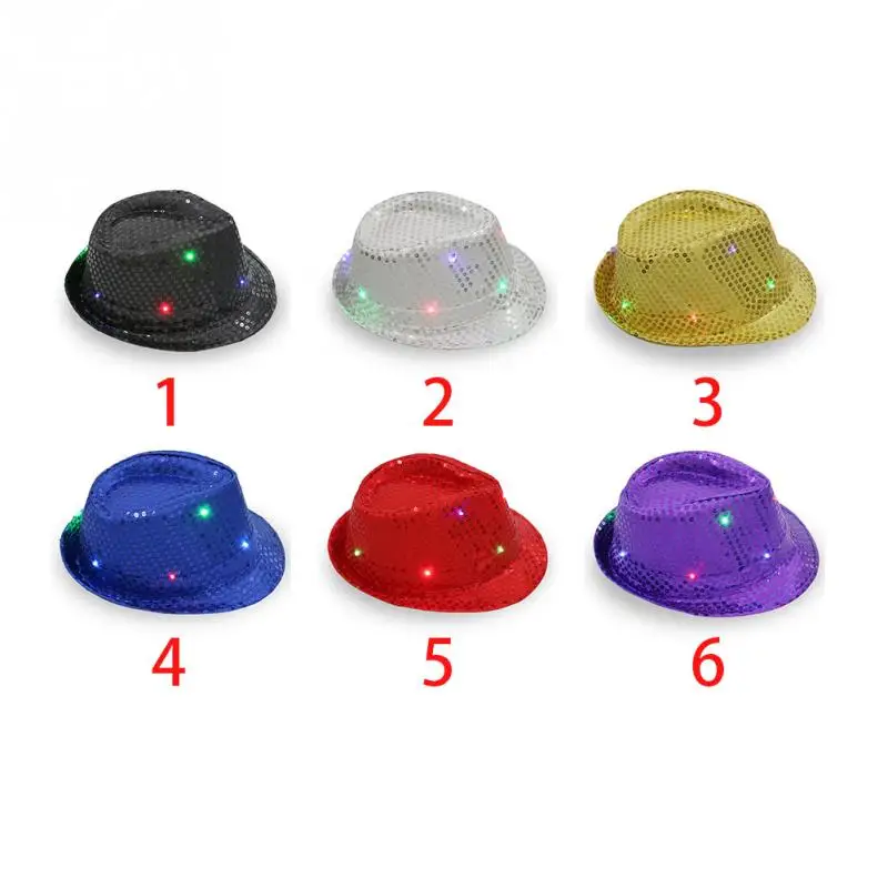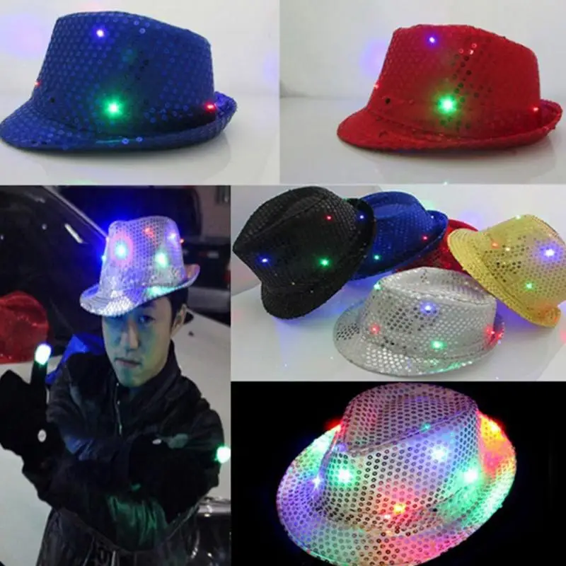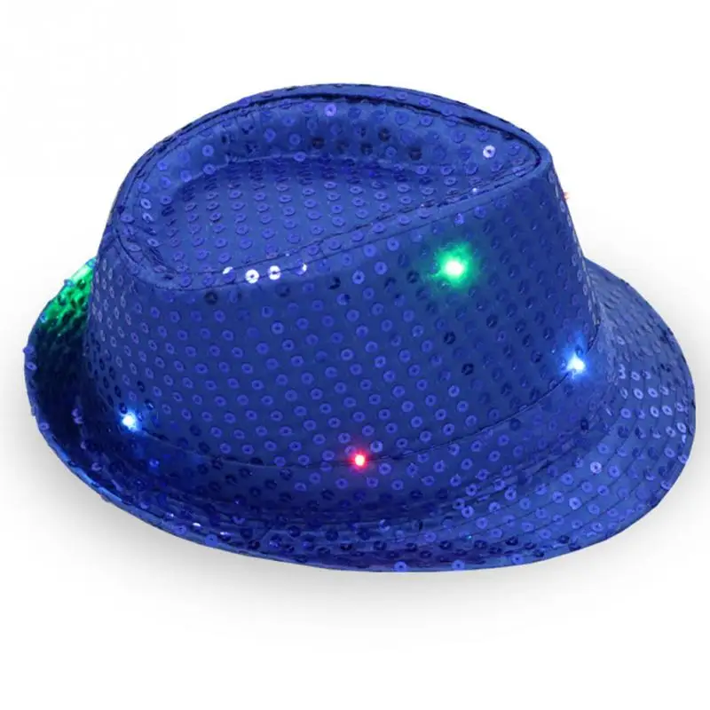 Christmas Party Jazz Hat Decoration Flashing Hats Light Up LED Fedora Trilby Sequin Caps Glow Party Supplies Dancing Hats #0816