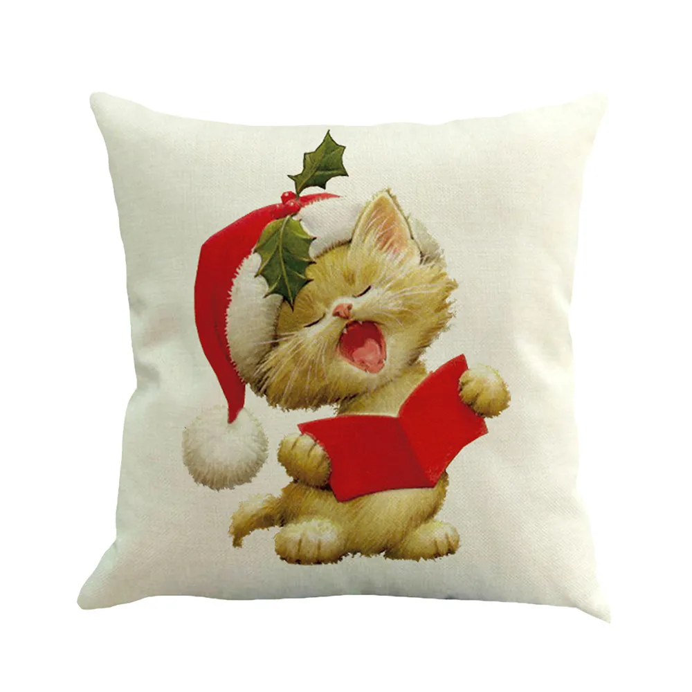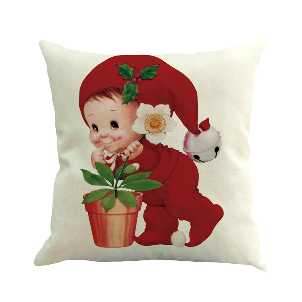 Christmas Cotton Linen Sofa Car Home Waist Cushion Cover Throw Pillow Case