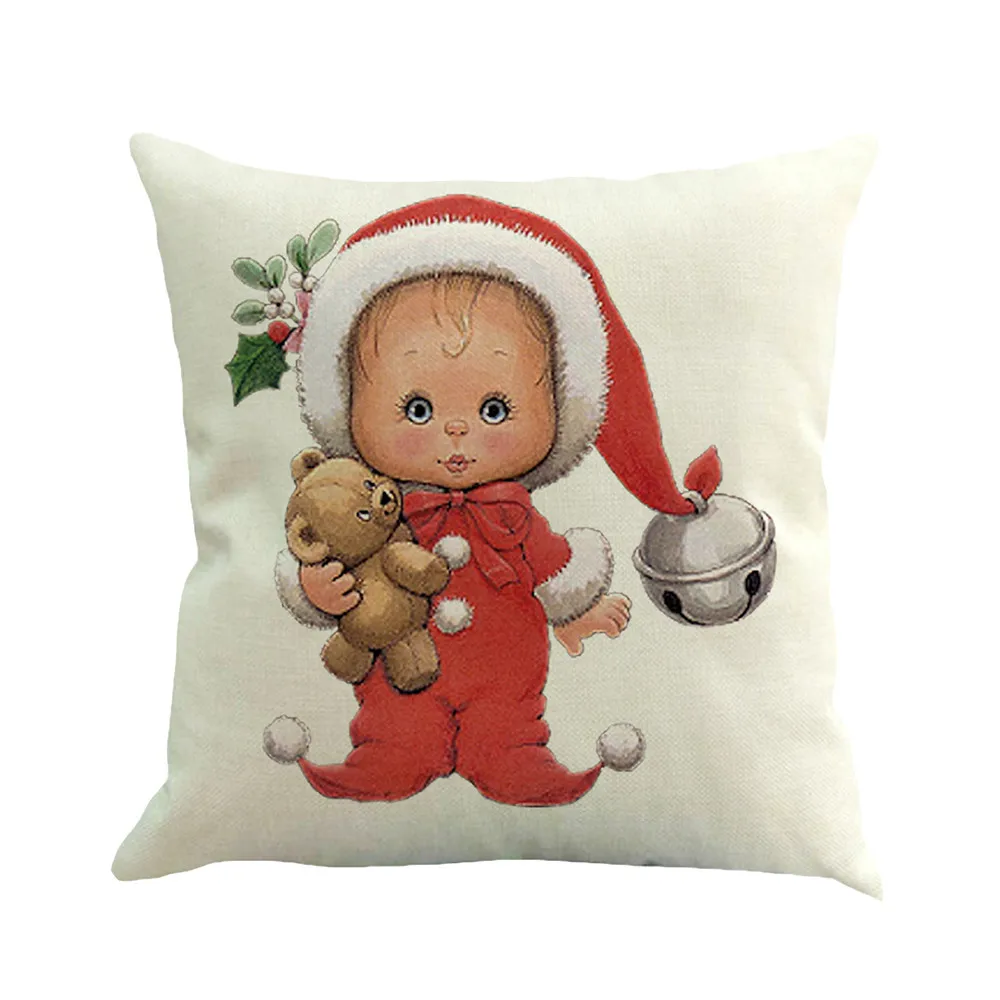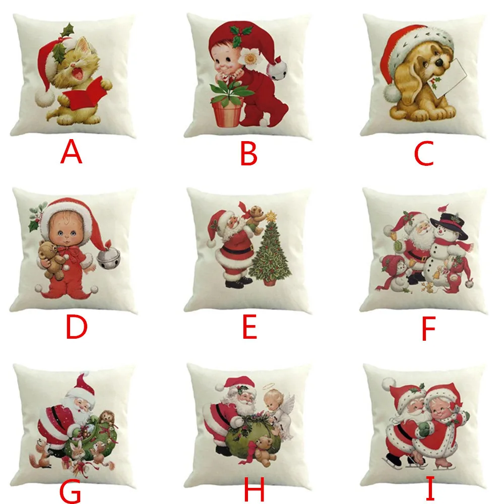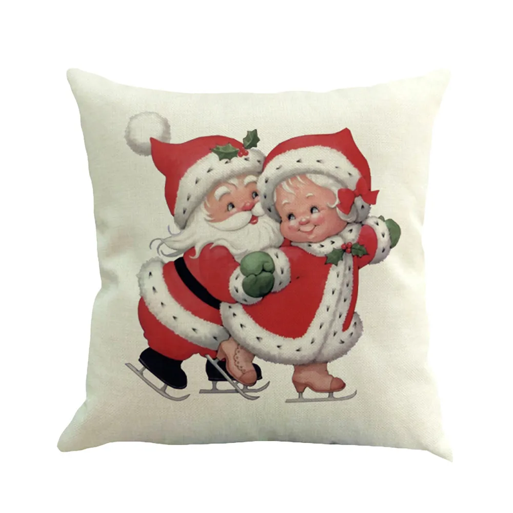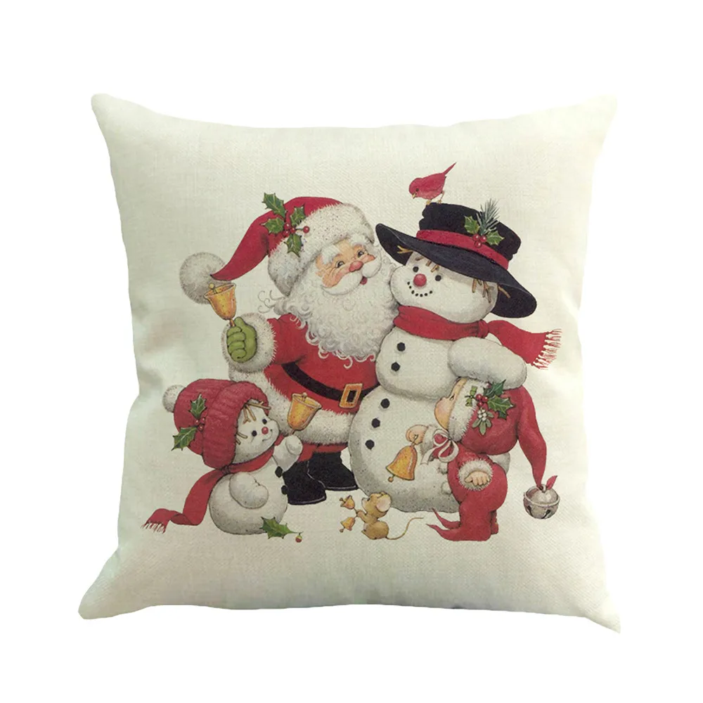 Christmas Pillow Case Cotton Linen Santa Claus Snowman Printing Pillow Cover Sofa Car Home Waist Cushion Cover Throw Pillow Case