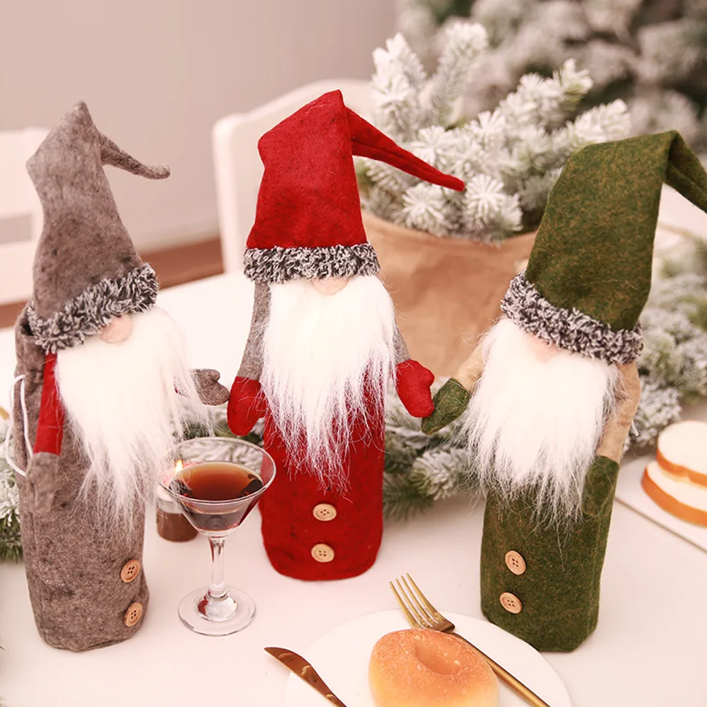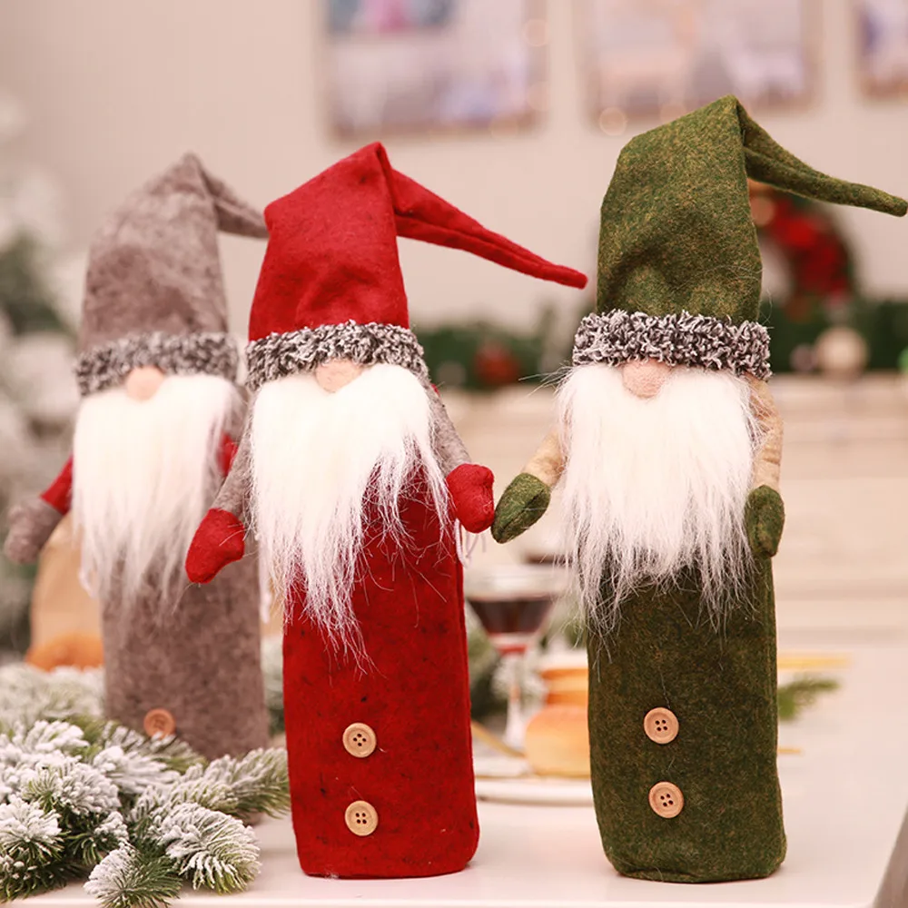 Faceless Dolls Wine Bottles Set Embroidery Old Man’s Toys Christmas Decors