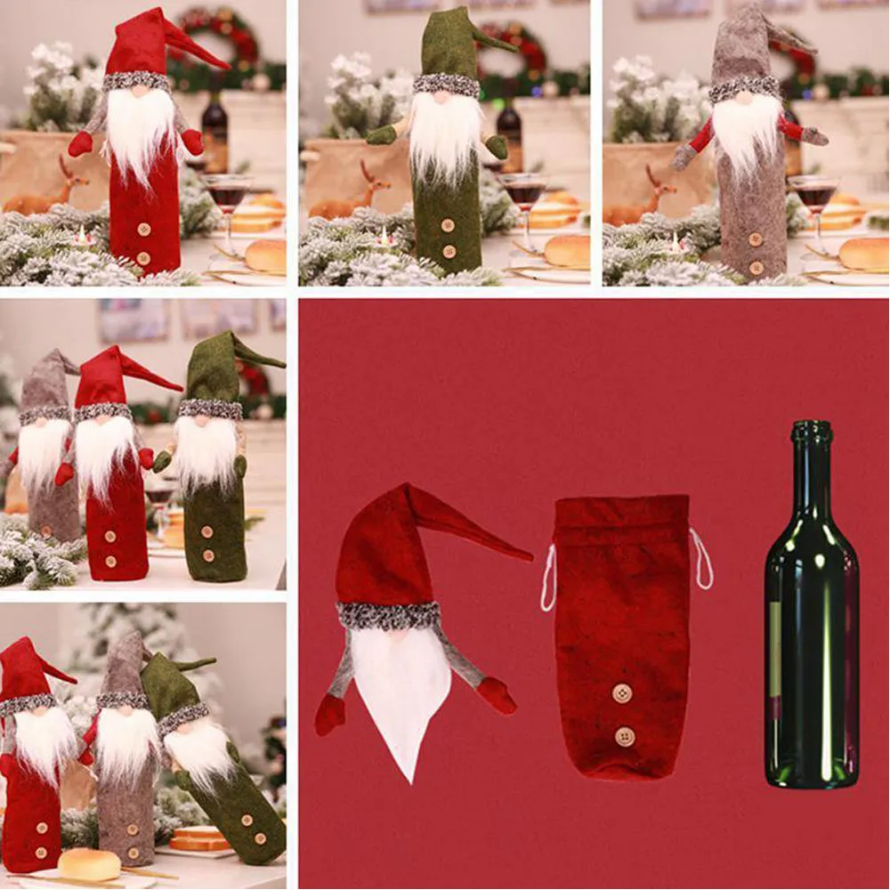 Christmas Wine Bottle Cover Set Faceless Dolls Wine Bottles Set Embroidery Old Man’s Toys Christmas Decors Cute Bottle Gift Bag