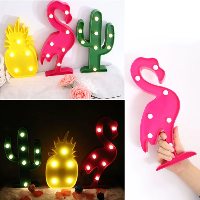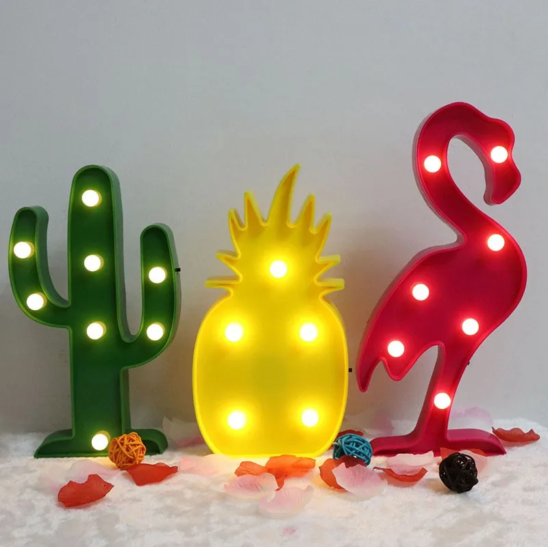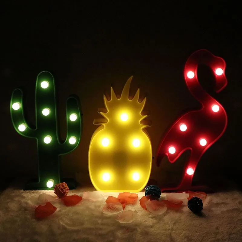 CLAITE LED Flamingo Night Light Pineapple Cactus Desk Table Lamp Novelty Cartoon Romantic Kids Gift Light for Home Party