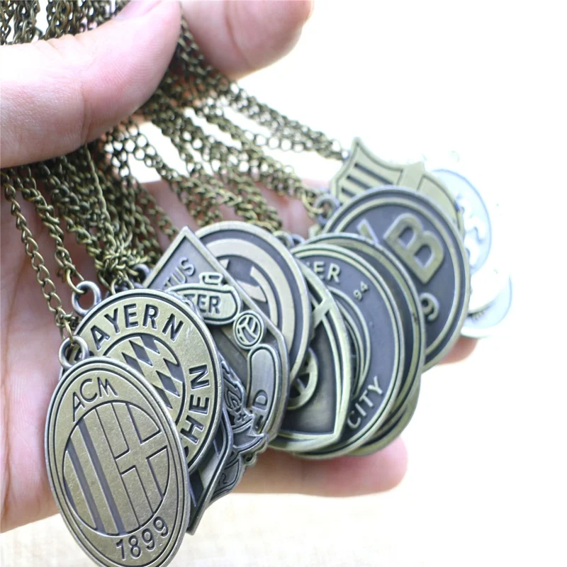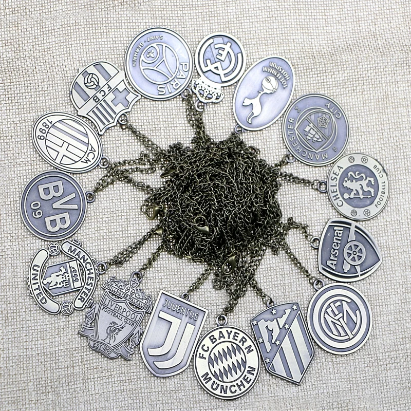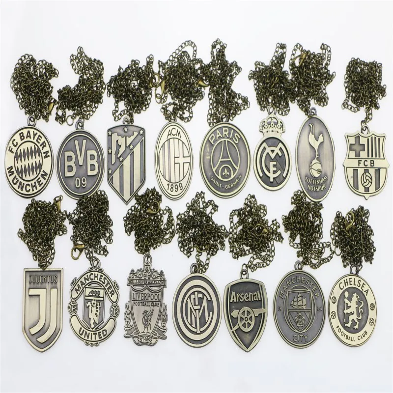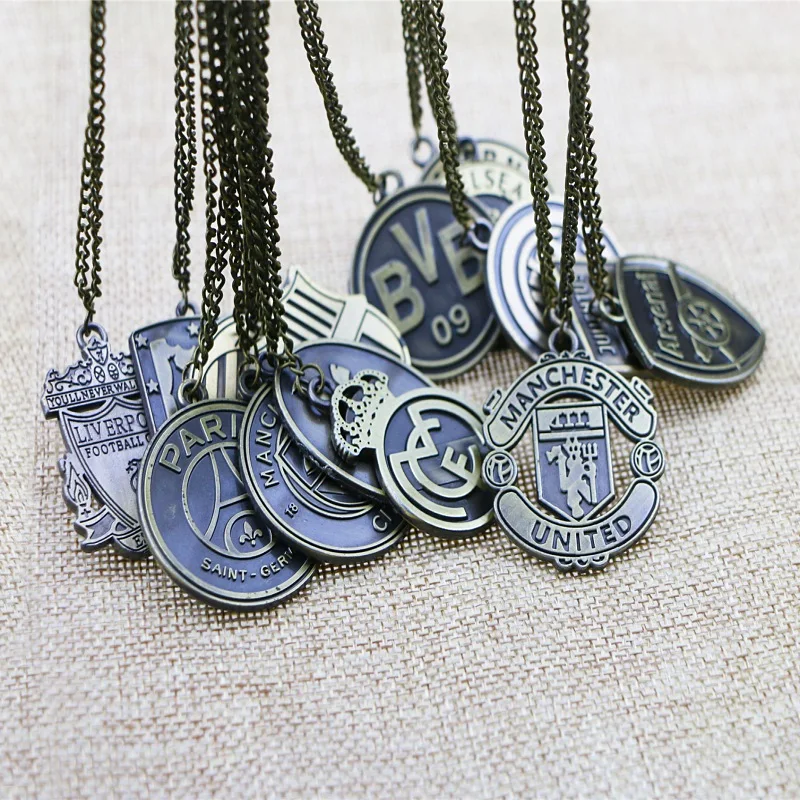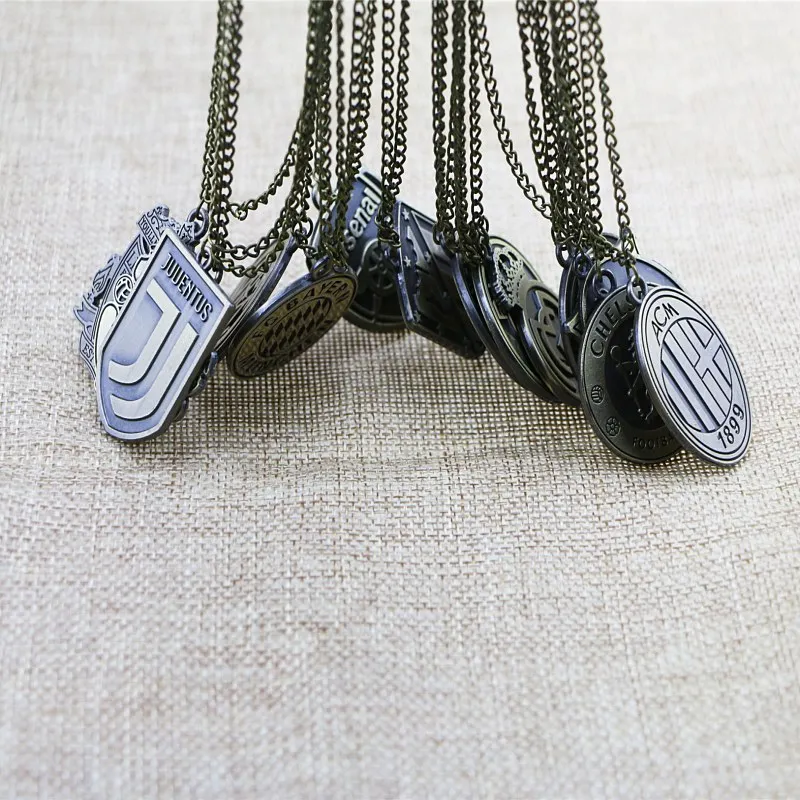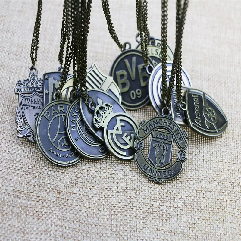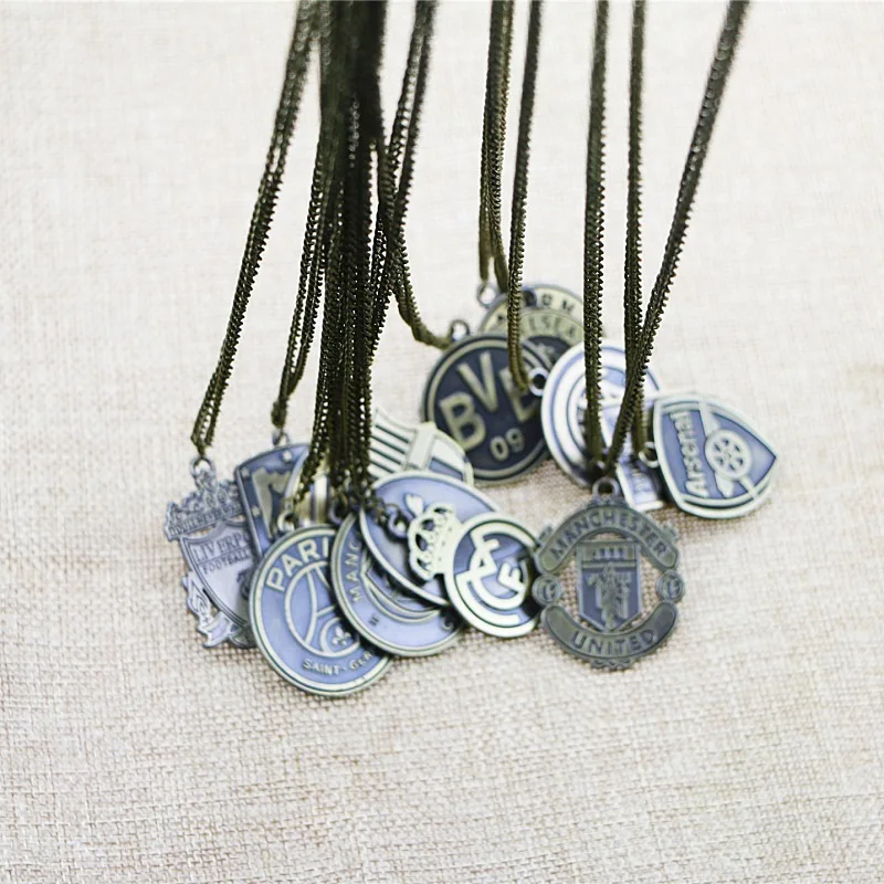 Classic Diy Antique Bronze Metal Necklace Football Club Chain Sport Jewelry Soccer Team Logo Necklace Gift Fans Souvenir Pendant